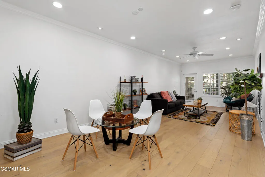 Welcome to this beautifully remodeled end-unit condo in the highly desirable NoHo Arts District. Enter through the oversized front door into a bright, open-concept living space. The spacious living and dining area features high ceilings and abundant natural light, while a decorative fireplace with a custom mantle creates a warm and inviting atmosphere. Through an elegant archway, the upgraded chef's kitchen showcases custom cabinetry, Quartz countertops, stainless steel appliances, a beverage fridge, and an impressive range with built-in griddle and grill--perfect for cooking and entertaining.The generously sized secondary bedroom includes custom closet cabinetry for optimal storage. The upgraded hall bathroom features new sink and lighting fixtures along with a large tub and shower with a brand-new shower head. The spacious primary suite, located toward the back of the home for added privacy, offers built-in closet cabinetry and a large en-suite bathroom with dual sinks and a luxurious spa-like walk-in shower. Step outside to your private balcony surrounded by mature landscaping, creating a peaceful retreat ideal for relaxing or enjoying your morning coffee. Additional features include luxury wide-plank vinyl flooring throughout, recessed and dimmable lighting, in-unit laundry, a Ring doorbell system, Nest thermostat, tankless water heater, and secure code-gated entry for added peace of mind. The building is beautifully maintained, with the roof completed just a few years ago and serene common areas throughout. This unit includes two parking spaces and is conveniently located near some of the best shopping, dining, gyms, and grocery stores Los Angeles has to offer, with easy access to everything the vibrant NoHo Arts District provides.