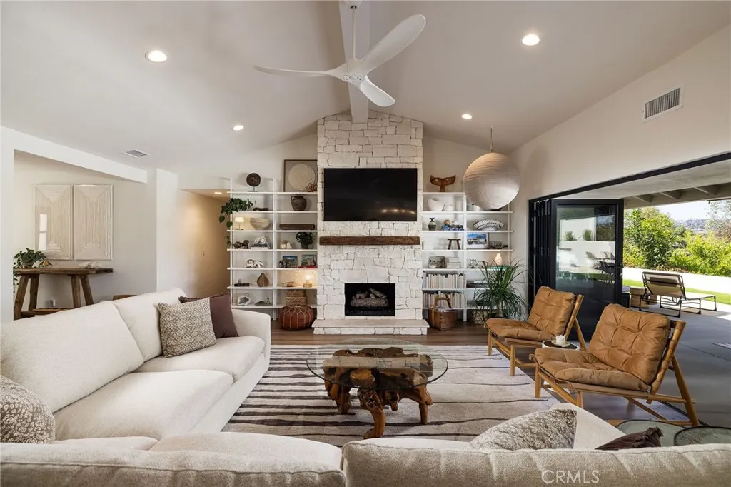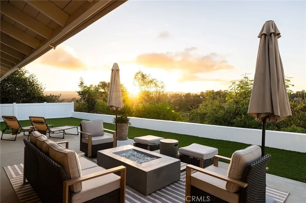 Completely reimagined from top to bottom, this single-level home on a quiet Laguna Niguel cul-de-sac blends modern sophistication with panoramic hillside and sunset views is true indoor-outdoor living. Flowing from thoughtfully renovated living areas through 16-foot bi-fold doors to a fully redesigned backyard, the open-concept floor plan creates a seamless connection between refined interiors and the natural surroundings. At the heart of the home, the large open kitchen features an oversized island with Quartzite countertops with striking Zellige tile backsplash. Stainless steel appliances and custom pull-out shelving balance elegant style with everyday function. The living room is anchored by a new floor-to-ceiling custom stone gas fireplace, built-in bookshelves and an in-wall sound system. A separate relaxing & cozy sitting area with a second gas fireplace and sliding door leads to the garden. The dining area continues the elevated feel with a new custom buffet, walnut countertop, beverage refrigerator and handblown glass chandelier. The primary suite is a private retreat with a spa-like bathroom clad in Calacatta marble tile, a freestanding tub beneath a picture window, a walk-in closet with built-in system and custom bedside chandeliers. Three additional bedrooms and two full bathrooms offer flexible living options. Custom blinds, upgraded door hardware, new built in laundry area and half bath complete the interior of the home. The oversized 2 car garage has new cement flooring with epoxy finish, storage cabinets, attic storage with pull-down access, water filtration and pressure systems. Outside, the entire property has been regraded with new drainage, new landscaping, outdoor lighting, floating stairs, walkways, patios and stucco walls. A built-in gas outdoor cooking station, artificial turf, and fruit trees make the backyard a natural extension of the home. A wider concrete driveway with cobblestone accents, new vinyl fencing, and a new roof with gutters & down spouts complete the exterior. The infrastructure reflects the same level of quality, with PEX plumbing, newer ABS drain lines, a newer tankless water heater, and a modern HVAC system with new ductwork. Newer windows and doors throughout enhance energy efficiency. A short walk or bike ride to Laguna Niguel Regional Park & Lake, pickleball courts, top rated Capistrano Unified schools and beaches. This is a rare combination of turnkey luxury and thoughtful craftsmanship in a prime location.