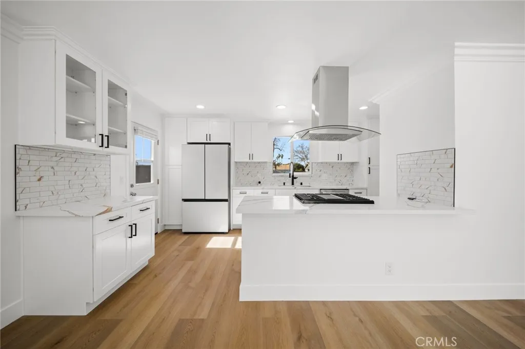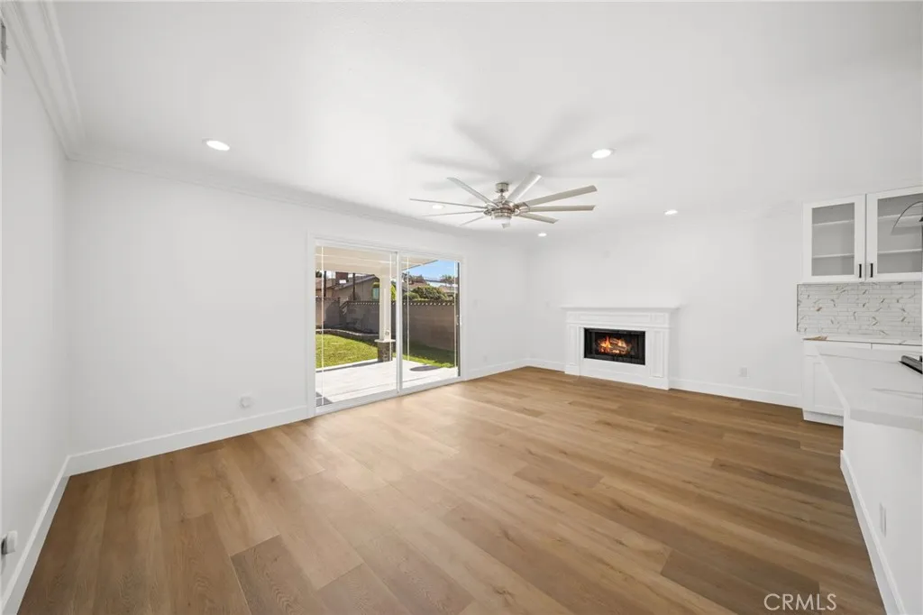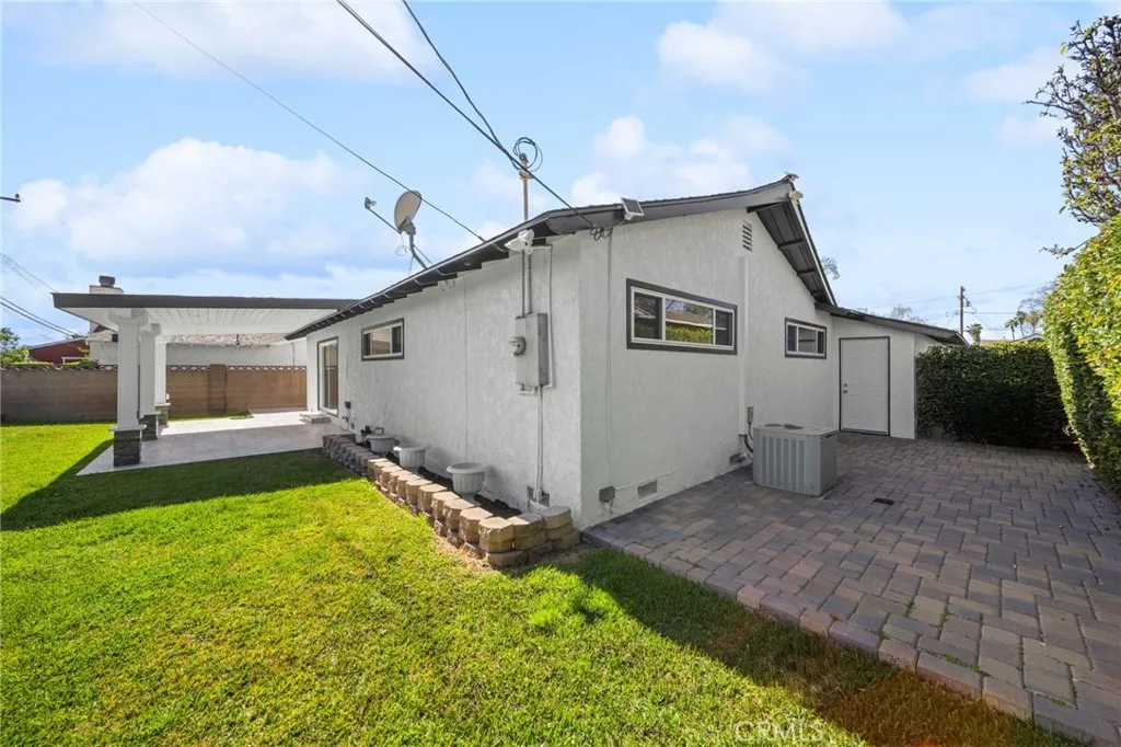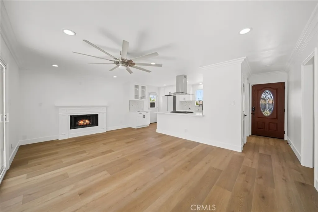 Welcome to this beautifully and thoughtfully remodeled home located in a quiet, family-friendly neighborhood in La Mirada! This turnkey 3-bedroom, 2-bathroom residence sits on a spacious lot and has been craftfully remodeled with modern finishes and attention to detail throughout. The home features new laminate flooring throughout, creating a seamless and stylish look while offering durability and easy maintenance. Double-pane windows provide energy efficiency and allow plenty of natural light to fill the home. The remodeled kitchen showcases granite countertops, ample cabinetry, and a layout designed for both everyday living and entertaining. The primary bathroom has been tastefully renovated with travertine tile and modern bronze finishes, creating a relaxing, spa-like atmosphere. The fireplace has also been beautifully done, serving as a warm and inviting focal point in the living area. Step outside to a large backyard perfect for entertaining, complete with a covered patio ideal for summer BBQs, gatherings, or relaxing evenings outdoors. The yard also features mature fruit trees ready to enjoy, adding charm and character to this wonderful outdoor space. This move-in-ready La Mirada gem offers comfort, style, and space—don’t miss the opportunity to make it yours!