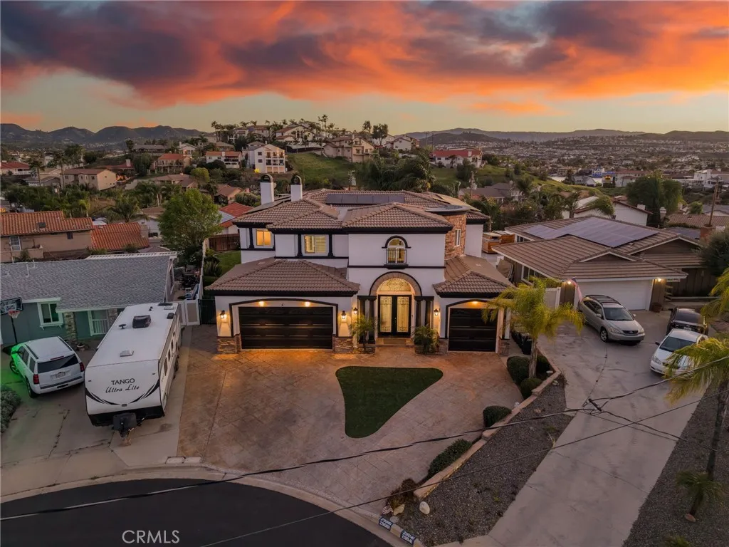 Located in the heart of Southern California’s private waterfront community of Canyon Lake, this stunning Tuscan-inspired residence offers the perfect blend of luxury, comfort, and resort-style living. Built in 2005 and extensively remodeled in 2021, this impressive 5-bedroom, 4-bath home sits on a quarter-acre cul-de-sac lot with space, privacy, and beautiful curb appeal. Step through the custom iron entry doors into a grand interior featuring soaring two-story ceilings, a wide entry hallway, and sightlines leading directly into the main living area. The living room showcases coffered ceilings and flows seamlessly into a spacious chef’s kitchen designed for entertaining. The kitchen features double ovens, built-in refrigerator, large center island, bar seating, and abundant cabinetry and pantry space. Just off the kitchen is the formal dining room, perfect for hosting dinners with friends and family. Throughout the home you’ll find high-end finishes and thoughtful upgrades, including travertine and bamboo flooring, granite countertops, custom stone showers, elegant wainscoting, surround sound, a private theater room, central vacuum system, custom interior paint, and epoxy garage floors. 42 owned solar panels on NEM 2.0, along with a Vivint security camera system. Upstairs offers three spacious secondary bedrooms, including two connected by a Jack-and-Jill bath and a third with its own en-suite bath and deck access. The primary suite serves as a private retreat, featuring a cozy fireplace and French doors opening to a deck with sweeping views of the surrounding community and hillsides. The primary bathroom offers a soaking tub, walk-in shower, dual sinks, and generous closet space. Step outside and the property becomes a private backyard resort. The oversized pool features a Baja shelf, swim-up bar stools, and raised spa with a new heater additionally approximately 1,500 square feet of outdoor living space, including a beautiful California Room and large grass area. The home is completed by an oversized garage with insulated doors providing ample space for all your toys. Canyon Lake offers a 1.1% tax base with no Mello Roos, 384 acre waterski/fishing lake, 16 parks most with beaches and playset, basketball courts, baseball fields, tennis & pickle ball courts, equestrian center, 18 hole golf course, pools, dog park, golf cart friendly streets, slalom course, ski jump, restaurants, community events and so much more!!! Live life on vacation in Canyon Lake!
