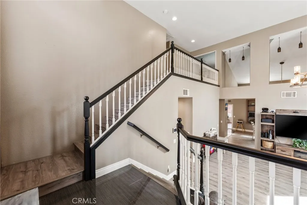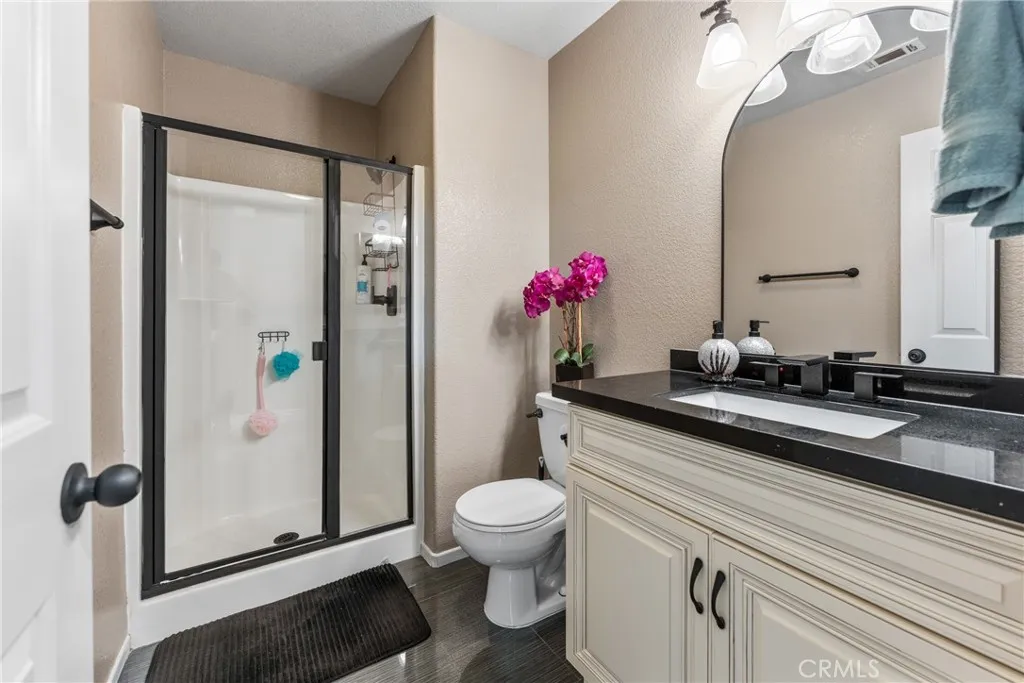 Welcome to your private retreat in the highly sought-after Corona Ranch community, where thoughtful design, elegant upgrades and everyday comfort come together beautifully! From the moment you enter, natural light pours through newly installed dual-pane Anlin Vinyl windows, creating a warm and inviting atmosphere throughout the home. The main level showcases beautiful new luxury vinyl flooring and flows effortlessly into a stunning chef-inspired kitchen designed for gathering and entertaining. Highlighting custom soft-close cabinetry, elegant stone tile accents, striking Black Galaxy Granite countertops and a custom glass backsplash creating a sophisticated yet welcoming space. Premium appliances include a five-burner convection self-cleaning over and side-by-side refrigerator complete the kitchen while standing at the sink you will soak in peaceful views of the backyard oasis. Step outside to discover a tranquil retreat featuring a custom spool with cascading waterfall-perfect for unwinding at the end of the day or hosting unforgettable evening with family and friends. The enclosed patio room, currently used as a private office, offers endless possibilities and could easily become a sunroom/creative studio/yoga space or playroom. A first-floor bedroom with a beautifully renovated bathroom provides an ideal space for guests or multi-generational living. Upstairs the spacious primary suite offers serene escape along with two generously sized secondary bedrooms and an updated bathroom. The spa-inspired primary bath features a large walk-on closet, oversized soaking tub, separate walk-in shower, private water closet and dual vanities with custom cabinetry. A space designed for relaxation and comfort. Additional highlights included a dedicated laundry room with convenient direct garage access. Wifi ran irrigation system, garage door, ring doorbell and thermostat are all included along with fully paid Solar! Just steps from the home residents enjoy a neighborhood park and playground along with walking distance access to the highly rated Corona Ranch Elementary School. Ideally located near shopping, dining, scenic hiking trails, major freeways and the unique charm of Horse-town USA. This home offers the perfect blend of lifestyle, location and luxury! Once you experience it in person, you'll understand why homes like this are so special! This is the one you've been waiting for!