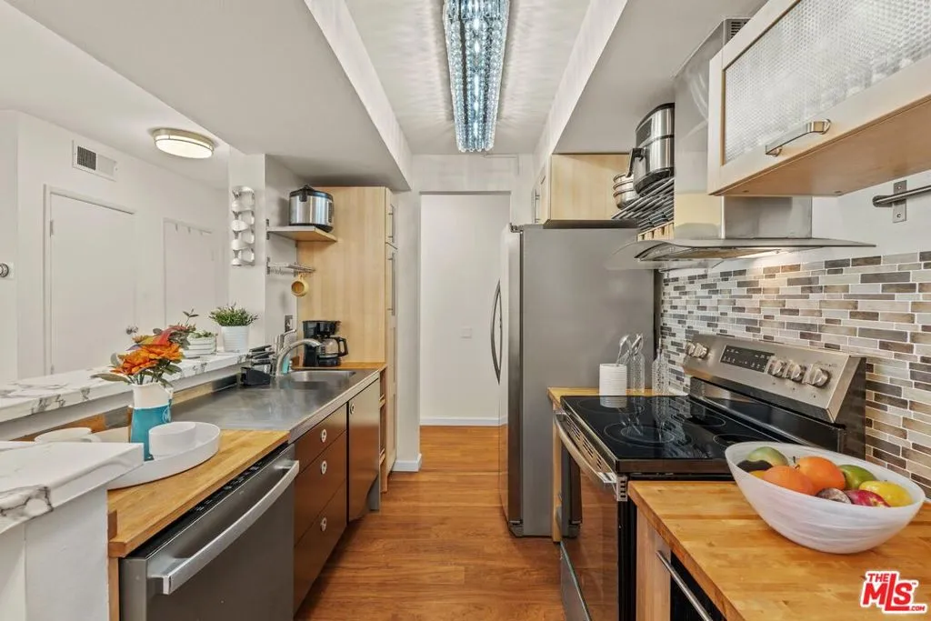 Welcome to this beautifully updated 1-bedroom, 1-bath residence in the sought-after Briarwood Building, ideally located just moments from the main entrance to Runyon Canyon Park. Facing east, the home is filled with gorgeous morning light and features a private balcony overlooking the resort-style pool and spa below an inviting setting for your morning coffee or evening wind-down. Inside, the thoughtfully renovated interior blends modern upgrades with everyday comfort. The sleek kitchen showcases stainless steel appliances, while recessed lighting and soaring ceilings enhance the bright, airy ambiance throughout. The spacious living room is anchored by a cozy gas fireplace and complemented by central HVAC and impressive storage, including two generous bedroom closets ideal for those with an extensive wardrobe. Residents of the Briarwood enjoy a host of amenities, including an elegant lobby with a meeting lounge, sparkling pool and hot tub, dedicated sauna, and convenient community laundry facilities. The unit also includes deeded tandem parking for two cars plus additional storage an exceptional convenience in this prime area. Perfectly positioned on the border of West Hollywood, this home offers effortless access to Runyon Canyon Park, the Hollywood Walk of Fame, the Hollywood Bowl, and an array of premier shopping and dining destinations. This is a rare opportunity to enjoy modern comfort, resort-style amenities, and an unbeatable location in one of LA's most desirable neighborhoods.