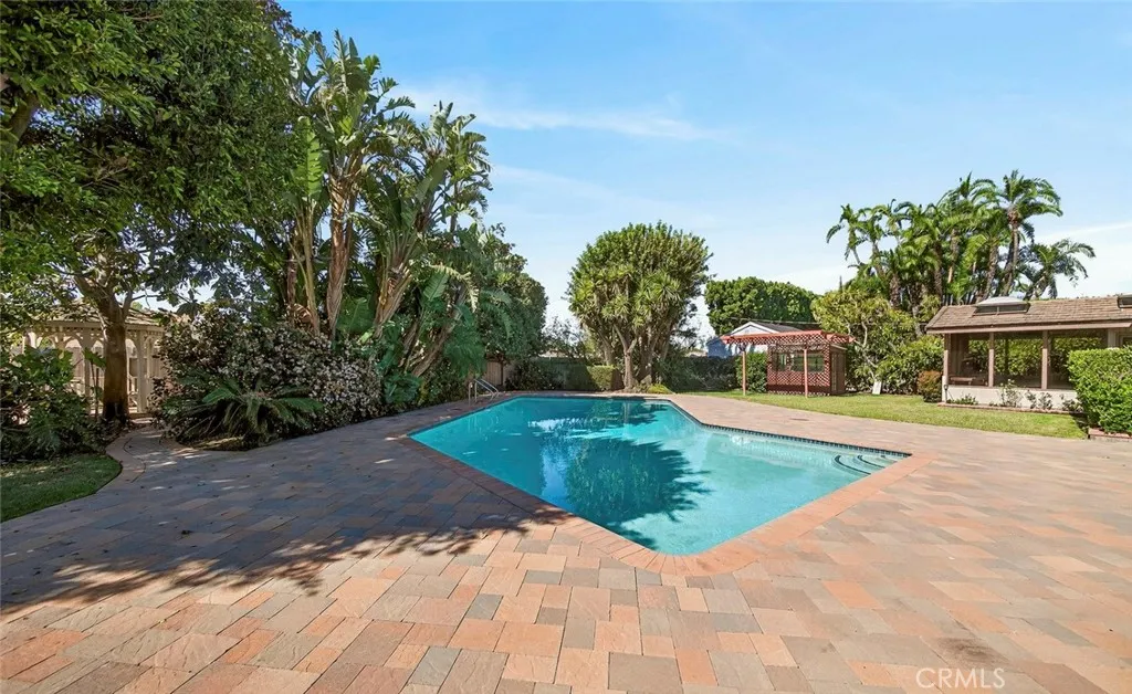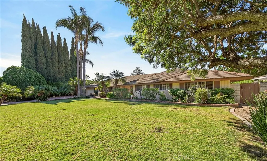 Welcome to this beautifully maintained four-bedroom, three full-bathroom ranch-style home situated on a stunning 0.41-acre corner lot in one of North Tustin’s most desirable neighborhoods. This private oasis features lush, well-manicured landscaping and a variety of mature citrus, and avocado trees, creating a peaceful outdoor setting. The backyard is designed for relaxation and entertaining, complete with a large swimming pool, inviting back porch, and a full sprinkler system to maintain the property’s vibrant grounds. Inside, the 2,450-square-foot home offers a warm and welcoming atmosphere with a comfortable, family-friendly layout and spacious living areas. The home features two fireplaces, a large family room and living room, and convenient laundry hookups. Included are owned solar panels, providing energy efficiency and long-term savings. The primary suite includes a unique private spa room retreat, offering a serene space to unwind directly connected to the bedroom. Located just minutes from shopping and dining at the Tustin Foothills, this home also falls within the highly regarded Tustin Unified School District. Don’t miss the opportunity to own this exceptional property that combines space, privacy, and prime location in North Tustin.