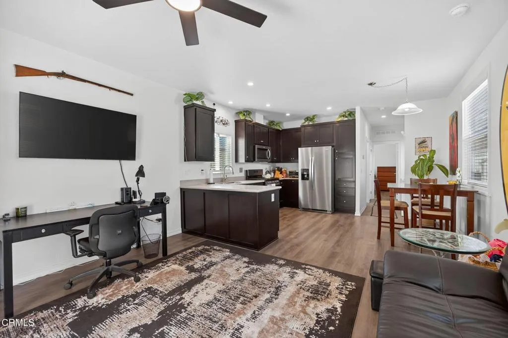 Modern Comfort in the Heart of the Ventura Valley! Discover the perfect blend of modern convenience and serene living in this beautifully maintained, nearly new home located in the desirable Arroyo Mobile Home Park (55+ community) where residents enjoy access to the park's mature orange, grapefruit, tangerine, and kumquat trees, offering a true taste of the California lifestyle. Built in 2024, this thoughtfully designed residence offers an open and airy floor plan with high ceilings, creating an inviting space that feels both spacious and cozy. The heart of the home is a sleek, custom kitchen that flows seamlessly into the living area, perfect for relaxed daily living or entertaining guests. The home features one generously sized bedroom with ample storage, a dedicated laundry area, and the comfort of central heating and air conditioning to keep you comfortable year-round. Step outside to enjoy the beautiful Ventura weather on your private covered patio--an ideal spot for your morning coffee or unwinding after a day of exploring. Nestled in a peaceful setting, residents enjoy access to a quiet community atmosphere with close proximity to hiking and easy access to both Ventura beaches and the charm of Ojai. This is an exceptional opportunity for an effortless, low-maintenance lifestyle in a prime Ventura location.