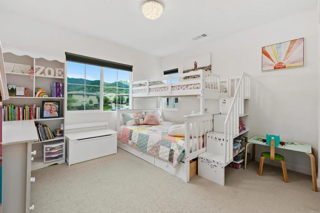 Experience the pinnacle of modern living in this stunning 2023-built Duet-style home. Rare and elevated, boasting 4 bedrooms and 2.5 baths across approx 1,668 sq. ft., and a 2-car garage plus 2 additional attached parking spaces, a rare luxury offered to only a handful of residences here. This isn't just another unit—it is arguably the most desirable location in the entire community. Perched on a premier corner lot with only one shared wall, this residence offers a rare level of seclusion. Unlike neighboring units that face parking rows, your arrival is defined by a charming, meandering path lined with olive trees and lush greenery. This truly feels like a private sanctuary. The interior is flooded with natural light thanks to the home’s end-unit position and an abundance of windows that capture breathtaking views of the surrounding mountains. The designer kitchen features a massive center island, elegant granite countertops, and a custom, sparkly blue backsplash that adds a touch of modern flair. Perfect for entertaining, the open concept flows seamlessly into the living spaces. Step outside to the only patio in the community featuring a wrought iron fence. Because of its elevated position, this design allows for incredible cross-breezes and an "open and airy" atmosphere while you soak in the mountain vistas—a feature truly unique to this home. Enjoy full access to the Citro Community Gardens and preserved groves, resort-style amenities hiking trails, a sparkling pool, spa, community room, and play areas. Don't miss this one-of-a-kind "lifestyle upgrade" in Horse Creek Ranch! Strategically located just off the I-15 at the 76, this home is a game-changer for commuters. Whether you are heading south to San Diego or north to Temecula, you are perfectly positioned to slash your travel time and enjoy a seamless transition from work to your private sanctuary.