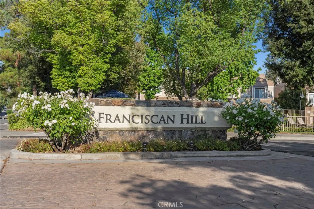 Welcome to this beautiful Franciscan Hill townhome, which offers 2 spacious bedrooms, 2.5 baths, and over 1,200 sq ft of inviting living space in the heart of Valencia, CA. As you enter, you'll appreciate the easy layout with direct garage access, a newer water heater, a stylishly updated kitchen featuring stainless steel appliances, a newer range stove, white cabinets, quartz countertops, a cozy breakfast bar, tile floors, and a convenient pass-through to the dining area. The step-down living room features warm wood laminate floors, a charming corner fireplace, a private balcony with stunning views, and additional storage space. Upstairs, you'll find two generously sized en-suite bedrooms, each with walk-in closets, wood flooring, and one with a fireplace. The natural light pours in through the skylight, and the upstairs laundry closet includes a stacked washer and dryer for your convenience. Enjoy guest parking and a community pool and spa steps away. You're also just minutes from CalArts, College of the Canyons, Valencia Town Center, great restaurants, and the 5 freeway. This is the perfect blend of comfort, location, and lifestyle! NO MELLO ROOS!