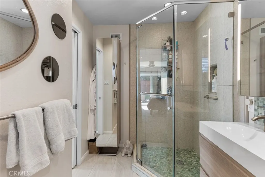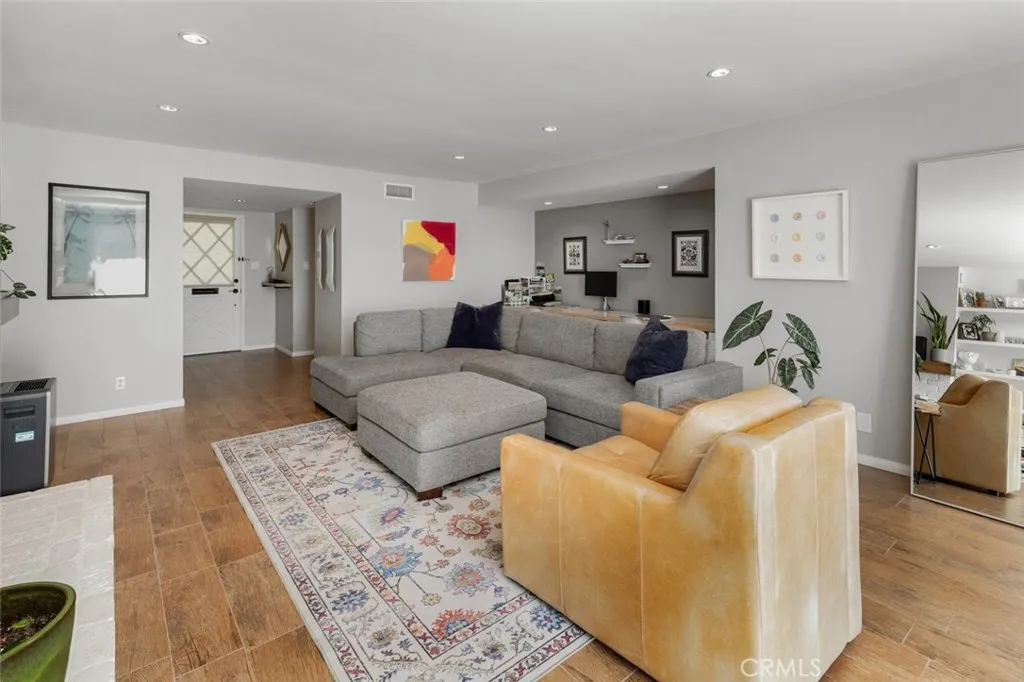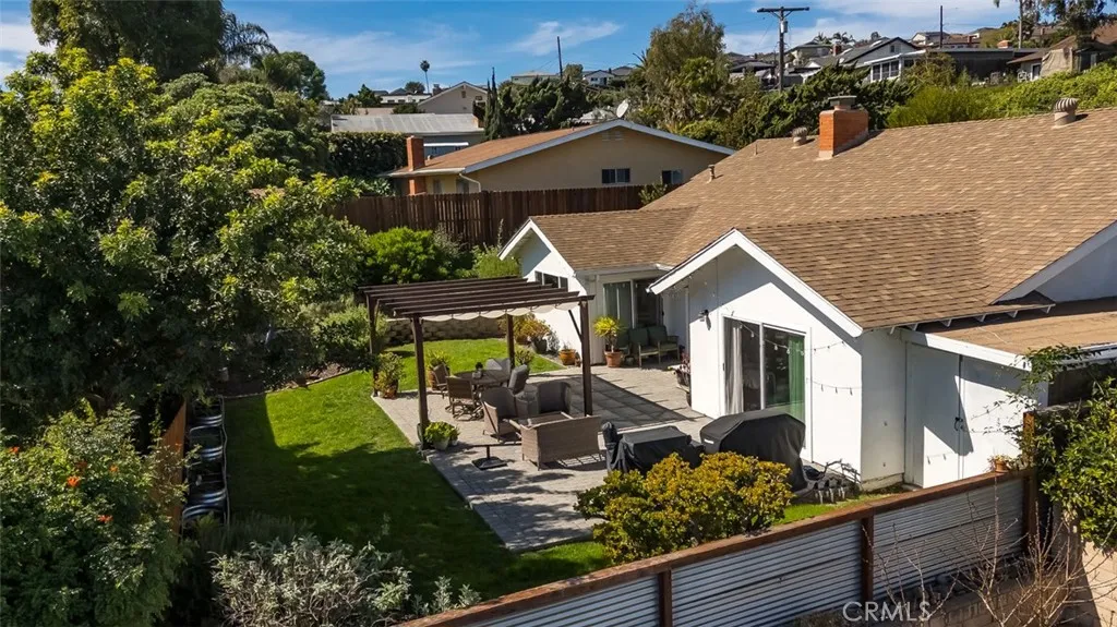 Discover the charm of this fabulous MidCentury Modern single-story home, just one mile from beautiful Doheny Beach, Dana Point Harbor, and the ocean. Nestled in the desirable Dana Knolls neighborhood, this home offers a seamless indoor-outdoor living experience with its full size sliding glass doors that open to a large, private, fully fenced yard and patio with a view of the nearby hills. The bright and inviting living room, featuring a remodeled fireplace with a handmade mantle, provides a versatile space that can be transformed into a child or adult work area, display space, or cozy seating nook. The kitchen is a chef’s dream, boasting white quartz countertops, an island, stainless steel appliances, and recessed lighting. It includes an area for a family table, and an additional tv and seating space, making it ideal for entertaining. Privacy is a key feature of this home, with the primary and secondary bedrooms located in separate wings. The en-suite primary bedroom at the back of the house offers large sliding glass doors bathing the space in natural light. The updated master bath includes dual sinks, a shower with seamless glass doors, modern fixtures, and low-flow toilets. The children’s wing is equally impressive, featuring a window seat in the front bedroom, ample closet space, and a remodeled bathroom with pale oak cabinetry and stunning tile. The home is equipped with newer dual-pane windows throughout, ensuring energy efficiency and tranquility and central A/C keeps the house cool in the summer months. Situated on a quiet single-loaded street, it is close to parks, restaurants, downtown Dana Point, and the Ocean Institute. Embrace the beach lifestyle in this exceptional home!