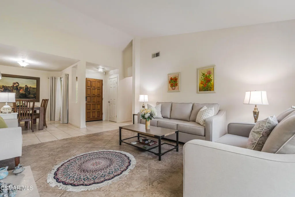 Lovely Single story view home in the ''North View'' neighborhood in Moorpark. This property sits up from the street offering stunning mountain views. Enter to find an inviting interior with fresh paint and high ceilings. Large living room with adjoining dining area and cozy family room with fireplace. Updated windows and doors throughout for energy efficiency. The open living areas flow seamlessly with porcelain tile flooring that extends through the living room, kitchen, and hallways. The kitchen offers white painted cabinets, granite counters and a variety of contemporary smart appliances including: a new Wi-Fi-enabled dishwasher, high-quality drinking water filter, smart Wi-Fi gas range and oven, full-size smart Wi-Fi microwave with hood fan, and a sleek refrigerator-freezer featuring InstaView(r). Down the hallways, find smart Wi-Fi power switches and dimmers in bedrooms and common areas. Full-house smart Wi-Fi lighting with automatic scheduling keeps everything perfectly illuminated, and a smart Wi-Fi deadbolt and palm-scanning entry for added convenience and peace of mind. Auxiliary whole-house generator wiring ensures reliability during any outage. The bedrooms offer comfort with warm laminated wood flooring and new closet sliding doors in every room. The primary bedroom has vaulted ceilings and views to the back garden. The primary bath has a new stone-top vanity, porcelain tile shower with frameless glass door, and new porcelain tile flooring. Laundry is a breeze with a top-load washer and gas dryer. Before heading outside, step into the 2 car garage with epoxy and metal-infused flooring that resists oil stains and tire marks while staying easy to clean. Duall240V charging ports (40A and 16A) support convenient Level II electric vehicle charging. Hands-free motion-controlled lighting illuminates every area, with smart programmable lights at the entrance and backyard access. Practical additions include an energy efficient 21-cubic-foot standalone freezer, and a high-efficiency new furnace with variable-speed blower for quiet, effective heating. Outside, the front and backyard have been designed for beauty and low maintenance. Relax and entertain family and friends on your back patio. Smart Wi-Fi sprinkler system adjusts watering intelligently based on real-time weather data. A delightful variety of fruit trees: two each of red and yellow pomegranates, black and red mulberries, and bitter/sour oranges, Alder Meyer lemon, prickly pear, white-flesh nectarine, and Saturn-donut peach. The well-maintained roof, with regular inspections, fortified bars for enhanced tile support, replaced underlayment and reset tiles as needed, promises lasting durability. This thoughtfully upgraded residence blends smart technology, premium finishes, and inviting outdoor spaces into an exceptional, move-in-ready home ready for its next owners.