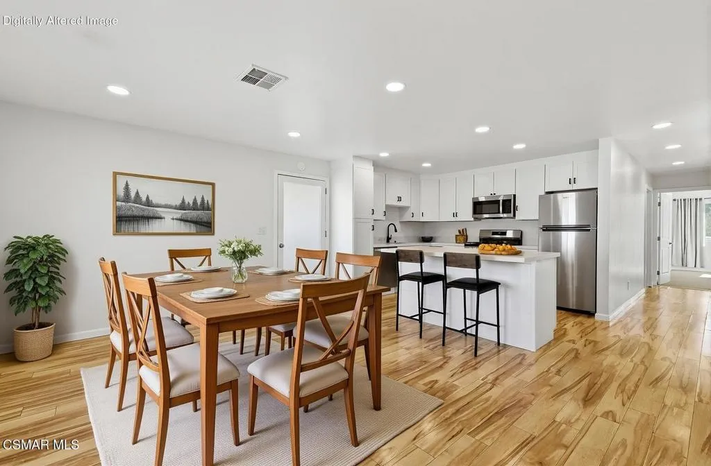 (Land lease is approximately $960.19 per month and includes most utilities except electricity.)Welcome to Arroyo Villa Estates, where peaceful living meets a highly convenient location. Nestled between Moorpark and Simi Valley, this quiet community sits adjacent to the scenic Simi Valley mountains and near the iconic Ronald Reagan Presidential Library, with Moorpark College just minutes away. Residents enjoy easy access to both the California State Route 118 and California State Route 23, making commuting throughout Ventura and Los Angeles counties simple and convenient.Thoughtfully redesigned with the guidance of the homeowner, this completely refurbished home blends polished style with comfortable everyday living. The bright, open floor plan creates an inviting atmosphere, enhanced by brand-new double-pane vinyl windows in every room that flood the home with natural light while improving energy efficiency.The sparkling kitchen has been upgraded with new cabinetry, modern countertops, and updated appliances, offering a clean, contemporary space that flows seamlessly into the living and dining areas--perfect for both entertaining and relaxed daily living. Recessed lighting throughout the home further enhances the warm and airy feel.This spacious two-bedroom, two-bathroom home features two walk-in showers with modern finishes. The primary suite provides a comfortable retreat with a large walk-in closet and double-sink vanity, creating a functional and stylish layout designed for everyday ease.Additional upgrades include a dedicated exterior 240-volt / 50-amp plug, ideal for electric vehicle charging.Whether you're searching for a first-time home alternative, affordable living in Ventura County, or a comfortable retirement retreat, this beautifully updated home offers a unique opportunity to enjoy tranquility, convenience, and thoughtful design in one of the area's most accessible locations.
