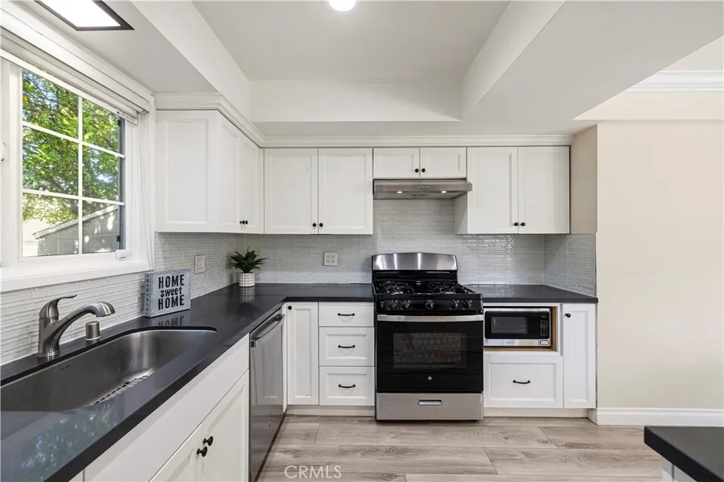 Prime gem tucked away in a quiet, desirable pocket of Sun Valley — where everyday living feels like a private retreat. From the moment you arrive, the inviting curb appeal, drought-tolerant landscaping, and charming orange tree create a warm and welcoming first impression. Inside, abundant natural light pours through expansive windows and sliding glass doors, filling the spacious living and dining areas. Lovingly maintained, this single-level home features a cozy fireplace, recessed lighting, new flooring, and an updated kitchen with granite countertops and a breakfast bar—perfect for both daily living and effortless entertaining. The open floor plan creates a seamless flow between the living room, dining area, and kitchen. Sliding glass doors lead to your own backyard sanctuary. A covered patio, vibrant water-wise turf, native landscaping, mature guava tree, and relaxing spa create a peaceful outdoor escape—ideal for al fresco dining, entertaining guests, or simply unwinding under the California sky. Designed with comfort and efficiency in mind, the home includes a tankless water heater and EV car charger. The two-car garage offers excellent potential for conversion into an ADU, multigenerational living space, or additional income opportunity (buyer to verify). Recent upgrades include new flooring throughout, a tankless water heater, updated bathroom vanities with reglazed tubs, and a full appliance package including refrigerator, dishwasher, and washer/dryer. Additional highlights include an alarm system with cameras, coded entry access, paver driveway, EV charger, and a backyard spa with electrical outlets ready for outdoor entertaining. This 4-bedroom, 2-bath home features a spacious primary suite with a private bath and a flexible layout with income potential. Conveniently located near shopping, dining, parks, hiking trails, and freeway access—and just minutes from Burbank, major studios, and the airport—this home offers the perfect balance of peaceful retreat living and everyday convenience.