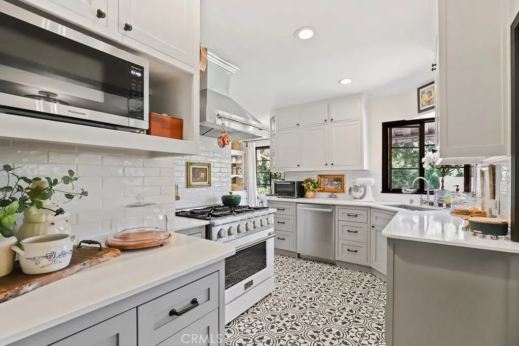 Rare opportunity to own a 1940 Spanish-style estate on approximately 1.25 acres in highly sought-after South Redlands, located just 0.6 miles from Redlands Country Club. Rich in architectural charm and character, this unique estate property with two bedroom guest house/2nd residence offers privacy, versatility, and timeless appeal. The main residence features four bedrooms and four bathrooms, including three bedrooms with direct bathroom access and a front office/study that could also serve as an additional bedroom. Hardwood floors highlight the formal living room with gas fireplace, with view and balcony off front and back. Elegant dining area. The lower level includes a spacious family room with fireplace and built-in storage, an additional bedroom with bathroom, and a former darkroom that could be converted into a kitchen for multigenerational, wine cellar, hobby room, or creative space. Outdoor living is ideal for entertaining with multiple private courtyards, a covered wood-beamed patio with built-in sink and fireplace, and a sparkling pool with separate changing rooms and a half bath. Mature fruit trees and winding garden paths create a peaceful park-like setting throughout the grounds. Adding exceptional value is a fully permitted detached second residence (ADU/guest house) completed in late 2020, approximately 864 sq ft, featuring two bedrooms, full kitchen, living area with fireplace, laundry room, and covered parking. Perfect for multi-generational living, guests, executive office space, or potential rental income. Recent improvements include updated electrical, new septic tank, and updated heating and air conditioning systems. A rare South Redlands estate property with acreage and guest house in one of the area’s most desirable neighborhoods.