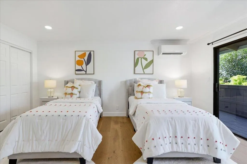Rare opportunity to own a beautifully remodeled PUD townhouse in the highly sought-after West Menlo Park neighborhood. This light-filled home features a 2-car garage, private backyard, and multiple balconies for seamless indoor-outdoor living. The bright living room showcases brand-new large sliding glass doors that bring in abundant natural light and open to patio and deck spaces surrounded by greenery. The fully remodeled kitchen is the heart of the home, featuring custom cabinetry, stunning countertops, premium near-new appliances, and a large island perfect for everyday living and entertaining. The main level includes a versatile bedroom and full bath, ideal for guests, multigenerational living, or a home office. Upstairs offers three additional bedrooms and two remodeled bathrooms. The spacious primary suite features a cozy fireplace and private deck access, while the spa-like primary bath includes dual sinks, a glass-enclosed shower, and a soaking tub. HOA covers internet, water, insurance (including earthquake), and maintenance of landscaped grounds, clubhouse, and two pools. Prime location near Sharon Heights shopping, Stanford, Sand Hill Road, and top-rated Las Lomitas schools. Walking distance to Safeway plaza. You dont want to miss this home!