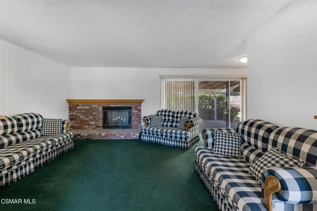 Located in the established Texas Tract of Simi Valley, this single-story Belwood model offers 4 bedrooms, 2 bathrooms, and approximately 1,612 sq. ft. of living space on an 8,276 sq. ft. lot. With no HOA and proximity to Big Springs Elementary and Valley View Middle School, the location continues to draw buyers seeking established neighborhoods and larger lot sizes. Brick-lined planters and driveway, artificial turf in the front yard, stucco and painted brick exterior, and a brick entry create a welcoming first impression. The extra deep 2-car garage provides flexibility for storage, workspace, or hobby use. Inside, the spacious living room features a brick fireplace, wood mantel, wood beam ceiling detail, and a sliding glass door opening to the backyard. Half pony walls define the dining area near the entry, creating separation while maintaining an open feel. The kitchen includes tile countertops, pantry area, and a dining nook with tile flooring, along with direct access to the extra deep 2-car garage with laundry hookups; the garage includes a side door leading to the backyard. Three secondary bedrooms offer comfortable space for family, guests, or home office use, each with closet storage. The hall bathroom includes a tub/shower combination and single-sink vanity. The primary bedroom features an attached bathroom with makeup vanity area, additional storage, pedestal sink, and walk-in shower with enclosed glass door. The backyard offers a large, covered brick patio, brick-lined planters, and block wall fencing along the rear and sides -- providing a private outdoor space with room to redesign or create your own retreat. Dual-pane windows and an updated HVAC system enhance comfort and energy efficiency. This single-story home brings together lot size, location, and layout, offering a great opportunity to make it your own.