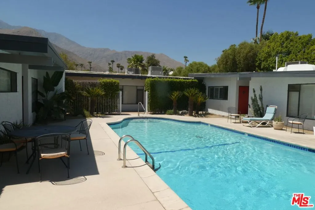 Classic Palm Springs Mid Century Modern 7-unit apartment building set against the majestic San Jacinto Mountains. Property is located in the highly desirable and much coveted residential neighborhood of Vista Las Palmas - Chino Canyon area. In addition to the 5 - 1 bedroom 1 bath units, there is a very spacious freestanding 2 bedroom 2 bath apartment and another spacious freestanding 1 bedroom 1 bath unit overlooking the common area pool. Including landscaping, resurfacing the pool, adding 5 private patio's to each of the 1 bedroom units, total exterior painting and the meticulous remodeling of 5 of the 7 units, ownership has spent approximately $200,000 in capital improvements. Onsite laundry room owned by the building provides added income.