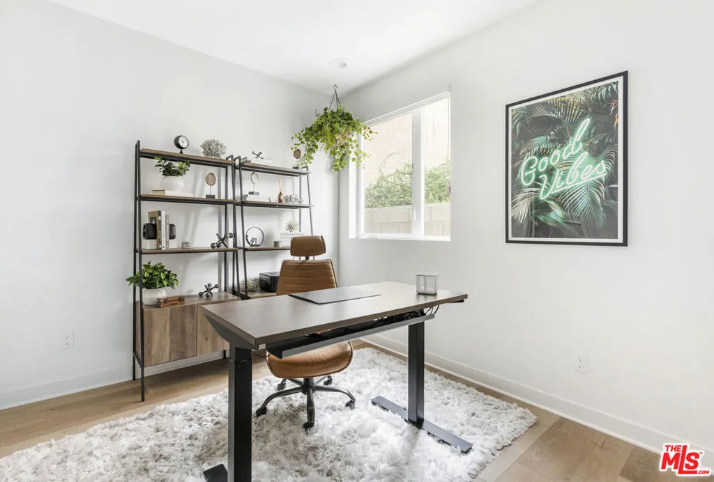 Beautifully furnished long-term lease available now in the heart of NoHo! This modern single-family home, part of a newer small-lot subdivision built in 2020, features soaring ceilings, oversized windows allowing amazing light from the south and west and east, tree-top views, and all the modern amenities one could want. Enter through your private two-car garage (complete with Tesla EV charger, tankless water heater, and storage area) into a spacious landing with direct access to the front door as well as your first floor office complete with en suite bath. Head upstairs to the second level where you'll find the enormous open-concept living, dining, and kitchen area, complete with balcony perfect for dining al fresco, and a powder room for guests. On the third floor you'll find 2 generously sized bedrooms, both with gorgeous spa-like en suite baths, as well as built-in cabinetry for storage and laundry room with stacked washer/dryer. And finally, the piece de resistance is the stunning rooftop deck complete with gorgeous outdoor lounge area with two sofas, umbrella, coffee table, BBQ, and access to water as well. Stunning mountain views and a lovely breeze make this the perfect place to cozy up with a cup of coffee or a glass of wine at the end of the day. Located on a great residential street with close access to the best of North Hollywood. Close to freeways, restaurants, studios, and shops. Available April 1st. An amazing value with all utilities included in rent.
