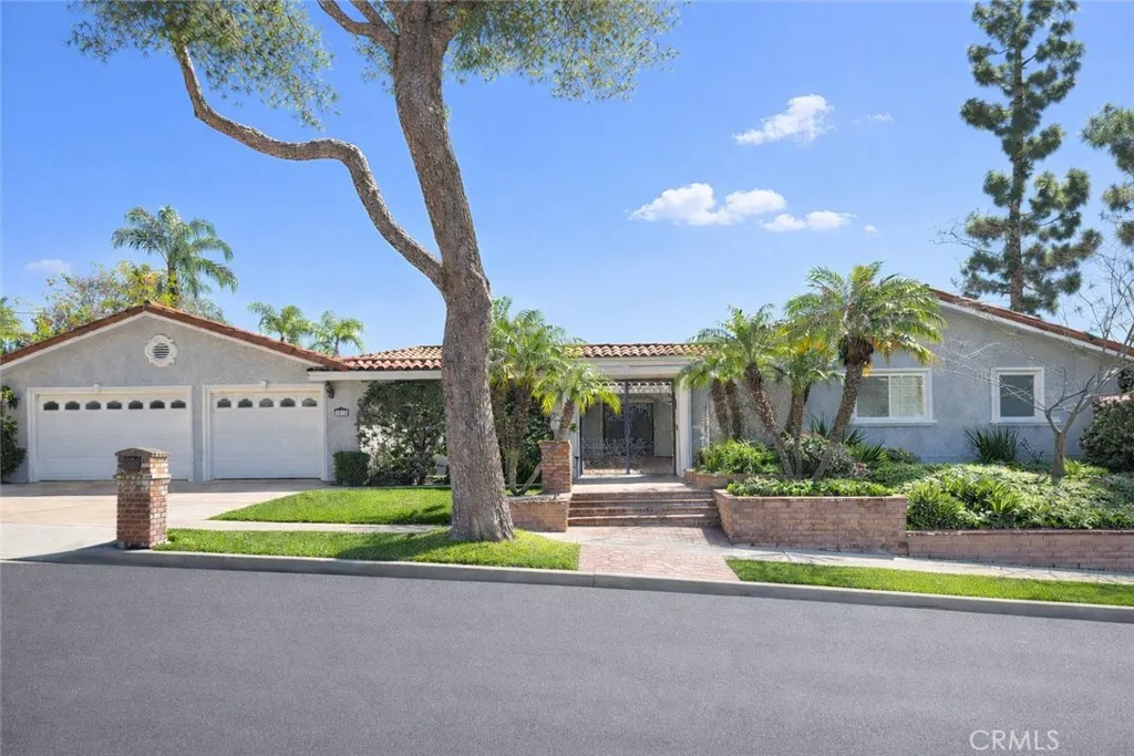 Rare opportunity to own a true single-story Spanish-style home in the prestigious North Friendly Hills community overlooking the Friendly Hills Golf Course (4th hole). Featuring 4 bedrooms, 4 bathrooms, and approximately 3,808 sq ft, this home offers a spacious and functional layout ideal for everyday living and entertaining. Privately gated, the home welcomes you into a charming courtyard with a custom planter centerpiece. Inside, the layout is enhanced by arched architectural details and travertine and wood flooring throughout. The floor plan includes a formal living room and family room with fireplaces, while the formal dining room is currently used as an office. The upgraded kitchen features an oversized island with granite countertops, designer drop lighting, and seating, along with dual sinks including a farmhouse-style sink, gas cooktop, stainless steel appliances, built-in desk, garden window, and an adjoining eating area. The kitchen opens to the living areas, and the family room features wood-beamed ceilings, a fireplace, and French doors leading to the outdoor spaces. A standout feature is the light-filled enclosed sunroom-style bonus space, ideal for a gym, game room, or additional living area. Situated on a 16,711 sq ft lot, the backyard features a built-in BBQ, spacious patio areas, grassy area, and a wood deck with golf course views. The primary suite offers a walk-in closet, a bathroom with separate shower and tub, and direct backyard access. Additional features include a three-car garage with epoxy-coated flooring and a separate storage room, crown molding, plantation shutters, central vacuum, ceiling fans, and dual air conditioning.