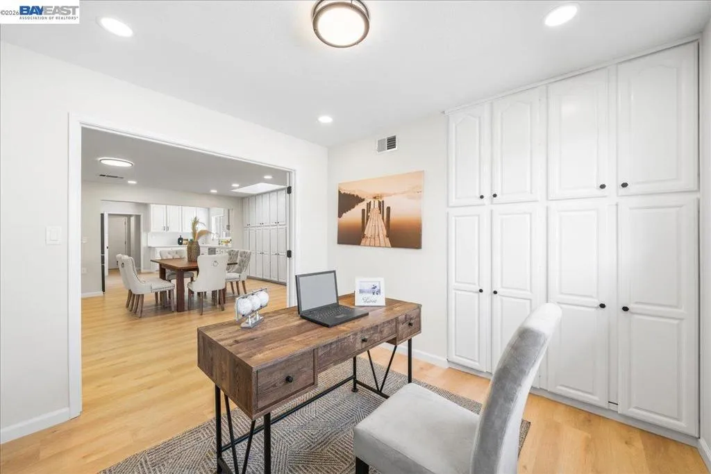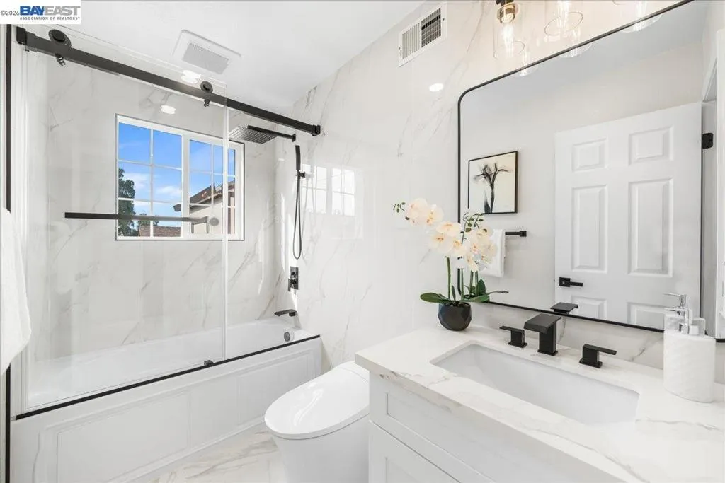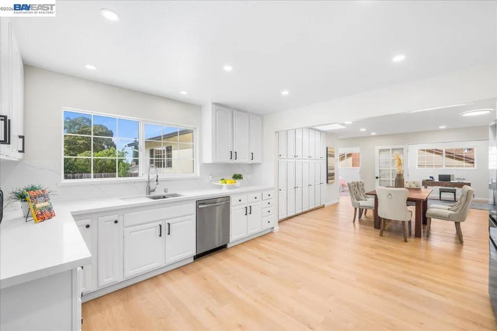 Beautifully upgraded east-facing residence in Fremont’s prestigious Mission San Jose district, serving top-rated Mission Valley Elem, Hopkins Jr High & Mission San Jose High. Set on a 6,300 sq ft lot, this expansive 2,665 sq ft home offers 5BR/3BA + a large bonus room, ideal for a growing family, home office, or 6th bedroom. Designed for versatility, the home features a private upstairs in-law unit with separate entrance, 2BR/1BA—perfect for extended family, rental income, or potential ADU use. The bright, open floor plan showcases a living room w/bay windows & fireplace, and a dining area w/skylight. The remodeled kitchen shines w/new quartz counters, stylish backsplash, SS appliances & freshly painted cabinetry. The main level includes a spacious primary suite w/dual closets, new walk-in shower, double vanity & porcelain tile, plus 3 add’l bedrooms & a fully renovated hall bath. Upgrades include LVP flooring, LED recessed lighting, dual-pane windows, split-zone heating, new A/C (downstairs), and fresh interior/exterior paint. Enjoy mature landscaping, lawn & patio. Prime location near Lake Elizabeth, parks, shops, dining, library, BART & easy I-680/I-880 access. Rare opportunity. Welcome home. Open house Sat 3/14 & Sun 3/15 from 1:00-4:00 PM.