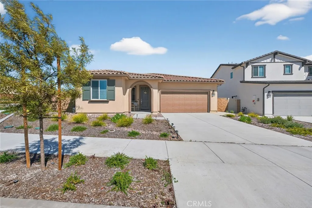 Step into a lifestyle of effortless elegance and turnkey sophistication. This 2025-built single-story masterpiece sits prominently on a spacious corner lot, offering the rare combination of brand-new construction without the wait. Located within the highly coveted Temecula Valley Unified School District, this residence blends contemporary design with the high-end finishes of a model home. The heart of the home is a sprawling open-concept sanctuary bathed in natural light. Designed for those who love to entertain, the gourmet kitchen is a culinary dream, featuring:Expansive Quartz Countertops: Providing endless prep space and a sleek, modern aesthetic. Premium Cabinetry: An abundance of storage curated for a clutter-free lifestyle. Designer Upgrades: High-end flooring flows seamlessly throughout, grounding the airy, voluminous feel of the Great Room. The versatile floor plan includes 3 spacious bedrooms plus a dedicated flex space—the ultimate "choose your own adventure" room, perfect for a high-end home office, a tech-integrated gym, or a sophisticated formal library. With 2.5 bathrooms, including a luxe primary ensuite, every inch of this home is designed for comfort. Experience a home that works for you. Fully equipped with sustainable solar energy and a whole-house fan, this residence is engineered for maximum energy efficiency and year-round climate control, keeping your footprint small and your comfort level high. Escape to your private, low-maintenance oasis. Both the front and backyards feature pristine professional turf and drought-tolerant landscaping, allowing you to spend your weekends enjoying the SoCal sun rather than maintaining it. As a resident of this premier community, you’ll enjoy:A brand-new resort-style pool and spa your own private getaway. Upcoming community parks and sports courts, perfect for active lifestyles. The ultimate commuter advantage with rapid access to the 15 and 215 freeways. Minutes from elite shopping, fine dining, and essential conveniences, this isn't just a house—it’s the benchmark for modern living in French Valley.