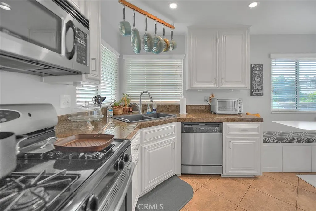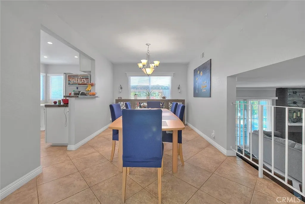 5 Navajo Trail Ln. is located on a quiet cul de sac in beautiful Phillips Ranch. This is a pride of ownership tri level, 3 bedroom (possible 4 bedroom), 2.75 bath home. The mid-level entry greets you with a cathedral ceilinged foyer that blends into the living room. The formal dining room and kitchen are adjacent to one another. There are 5 steps down to the family room and an optional 4th bedroom with a 3/4 bath and walk-in shower. Currently the family room is oversized in place of the 4th bedroom, which was a builder option when new. Stay warm with the family room fireplace. In addition, on the lower level you have direct access to the 2-car garage and laundry area. From the family room you access the beautiful back yard from the sliding door. A covered patio is ideal for entertaining friends and family. A lush lawn and planters provide for a peaceful experience. Coming back inside, from the mid-level you have 8 steps up to the 3 additional bedrooms and 2 bathrooms. The primary bedroom with a double door entry looks toward the front yard. A luxury bathroom with twin sinks, a soaking tub/shower, and a walk-in closet will have you spoiled. The additional bedrooms are nicely sized with a hallway bath providing twin sinks and a shower/tub combo. The roof has been changed with a fireproof steel shingle. Award winning schools are shared with N. Diamond Bar. Nearby shopping includes a Wal Mart, Winco grocery, Target, a myriad of restaurants and shops. Drive 10 minutes to the Shoppes, Ranch 99, or Costco in Chino Hills. Likewise to the Spectrum in Chino. Easy access to the 10, 60, 71, 57 and 210 freeways. Phillips Ranch offers a great value and a peaceful living experience.