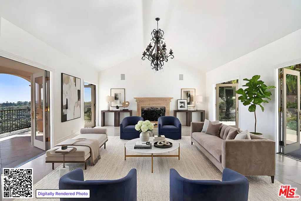 Bring your vision. Bring your designer. Bring All Offers! Nothing stands above you at this unique Mediterranean villa. Perched at the absolute top of a private gated street in the exclusive Beverly Hills Post Office enclave, 2840 Briarcrest commands sweeping east-facing ridgetop views that stretch forever. Beverly Hills. Hollywood Sign. Downtown LA. Griffith Observatory. Dodgers Stadium. San Bernardino Mountains. The iconic Bird Streets and Wonderland unfold directly below, completely unobstructed and yours forever. Former home of a Lakers legend. This commanding 8,114 sq ft modern Mediterranean estate sits on an expansive 40,240 sq ft lot where total privacy meets once-in-a-generation opportunity. Presented in clean vanilla-box condition and ready for your vision, the perfect canvas to create your personal Trousdale masterpiece. Brand-new roof with 30-year warranty. Fresh stucco exterior. Newly waterproofed balconies. Refinished hardwood floors throughout. Fresh paint. Grand double doors open to a perfectly layered flow designed for effortless living and legendary entertaining. The main level makes an immediate statement, with a powder room and formal living room with soaring vaulted ceilings, a wood-burning fireplace, and a large balcony framing the entire skyline. Half-level down, the energy flows: a gracious sitting area opens into formal dining, an expansive open-concept family room, and a chef's kitchen with vaulted ceilings, a second fireplace, wrap-around windows, an oversized island with cooktop, built-in appliances, and a walk-through pantry. A large maid's quarters with a separate entrance, en-suite bath, and laundry adds ultimate flexibility. One level down lies the private bedroom wing, anchored by a luxurious primary suite featuring a sitting area, private view balcony, and spa-like bathroom with sauna. Four additional en-suite bedrooms follow (three with their own balconies and head-on city views) plus a spacious home office. Lowest level delivers the showstopper: nearly 2,000 sq ft bonus party room with dramatic coffered ceilings, direct city views, separate dining area, kitchenette, and full bath built for nights that never end. Expansive balconies and a private terrace with lawn invite your creativity. Picture a sleek hot tub, fire-pit lounge, or resort-style al-fresco oasis. The hillside topography keeps everything ultra-private while the views own the stage. Three-car garage. Unmatched elevation. Game-changing potential. This isn't just a house. It's a rare ridgetop canvas at the absolute pinnacle of Los Angeles' top neighborhood. All offers will be considered and responded to.