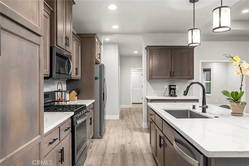 Welcome to this beautifully maintained 3 bedroom, 3 bathroom home with a spacious office, built in 2021 on a generous .28 acre lot. This versatile floor plan features two primary bedrooms, including a junior suite, making it ideal for multi-generational living, guests, or added privacy. The main primary suite offers a huge walk-in closet, double sinks, a soaking tub, and a walk-in tile shower, creating a relaxing retreat. The bright living room features a cozy gas fireplace and large windows that showcase beautiful natural views, bringing in plenty of light and a peaceful setting. The home includes durable LVP flooring throughout the main living areas with carpet in the bedrooms for comfort. Step outside to a large concrete patio, perfect for entertaining, relaxing, or creating your ideal outdoor living space. The spacious .28 acre lot offers room for a pool, RV parking behind the gate, and plenty of space to customize. Located in an established neighborhood with mature trees, this home is conveniently close to the hospital, downtown, shopping, and local amenities while still offering a quiet neighborhood feel. A great opportunity to enjoy modern construction, flexible living space, and a large lot in a desirable location.