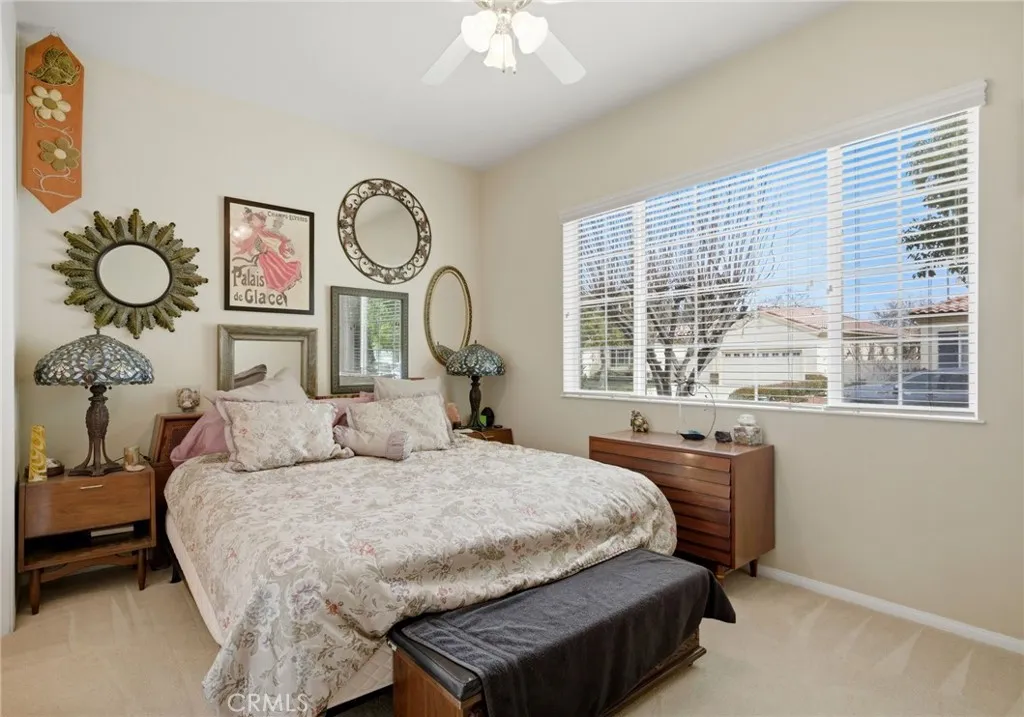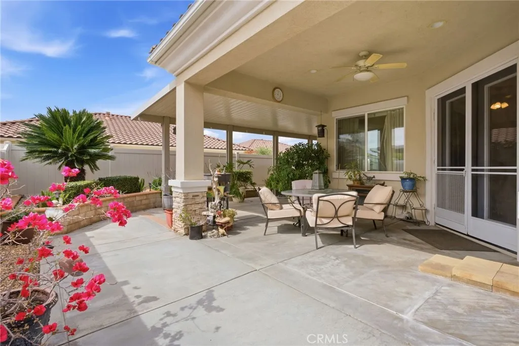 "Emerald" model at Solera, a 55+ active adult community in the Solara Community. Fully Paid for 16 panel Solar System allows this home to be a bargain. Basically, no electric bills so you can enjoy our warm California Days in total comfort. Plus, you get this stunning home that offers large living spaces with beautiful windows allowing tons of natural sunlight. With an open floorplan the great room features a fireplace for our cool winters, a spacious dining area, and large open kitchen with separate eat on kitchen island. The Great room has French doors leading into a beautiful outdoor living space. The kitchen has functional Corian countertops and beautiful wood cabinets. The appliances include a double oven, microwave, sink with newer faucet and large spacious kitchen island. There are two ensuite bedrooms, each extremely private with large baths and closets. Included is a spacious study and a perfect 1/2 bath for guests. There is a large inside laundry room with a sink and steps out into the almost 3 car garage perfect for your 2 cars and a golf cart. The backyard is private and almost completely covered with alum covers and a built-in patio cover. The maintenance of the back yard is virtually turnkey so a perfect home to allow travel without any extra cares. Located in the Solara 55 and over community you get the benefits of a planned community that is gated and private. Extremely well-maintained club house, pools, spa, activities and walking trails. This home is only one of a few that will have fully paid for solar. Please call for your private showing.