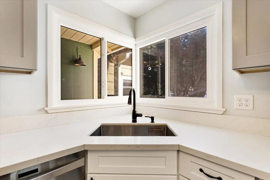 If you're looking for a home in the Santa Cruz mountains, without the windy roads, hills, & lots of sunshine, look no further! Just an easy 10 min from downtown BC and 2 blocks from the Golf & Country Club is this beautiful, mid-century, single level home with new double-pane picture windows in every room that provide so much natural light and stunning refurbished oak floors. Updated, open kitchen with quartz counters, new upgraded SS appliances, large island & new HVAC & AC for those warm summer days. Large living room opens to the backyard with the sounds of a babbling brook and peaceful setting ready for your vision! Plentiful side and front yard too with so much potential for your family to garden or create whatever you desire! Large primary bedroom has two closets and two large windows with renovated primary bath. The property includes an attached double car garage as well as an oversized metal, high ceiling building that will accommodate an RV on one side and a shipping container installed on the other for a secure workshop, gym, storage or maybe turn into an ADU? All at the end of a quiet, cul-de-sac. This special home will make anyone happy w/ it's sunny disposition and no-stress feel; 30 min from Santa Cruz beaches or approx 30 min to the Bay Area!