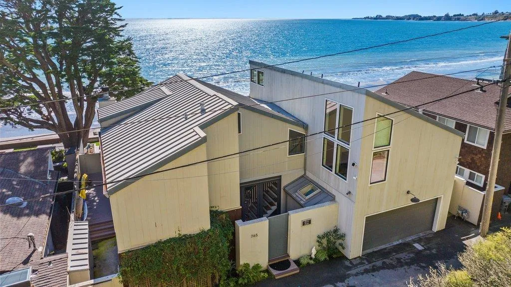 Welcome to 765 Las Olas Drive, a rare opportunity to own a beachfront home in the Seacliff neighborhood of Aptos on one of the most sought-after oceanfront streets in Santa Cruz County. Located behind the private gate of Las Olas Drive, this property offers privacy, direct beach access, and sweeping views of Monterey Bay. Expanded and fully remodeled in 2014, the home blends coastal charm with contemporary comfort. Some upgrades include solar panels and tankless on-demand water heater. Expansive decks extend the living space outdoors, creating the perfect place to relax, entertain, and enjoy the breathtaking views. The living room and kitchen showcase the ever-changing seascape. The primary suite features an en-suite bathroom, walk-in closet, and private patio with views toward Capitola Wharf and Pleasure Point. A 2 car garage, office, and additional living areas provide flexibility for guests or work-from-home needs. The kitchen features high-end Viking and Wolf appliances and a separate adjacent laundry room. Enjoy the fire pit, hot tub, and private staircase leading directly to the sand. An exceptional opportunity to experience the best of Santa Cruz County coastal living.