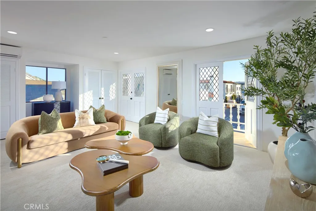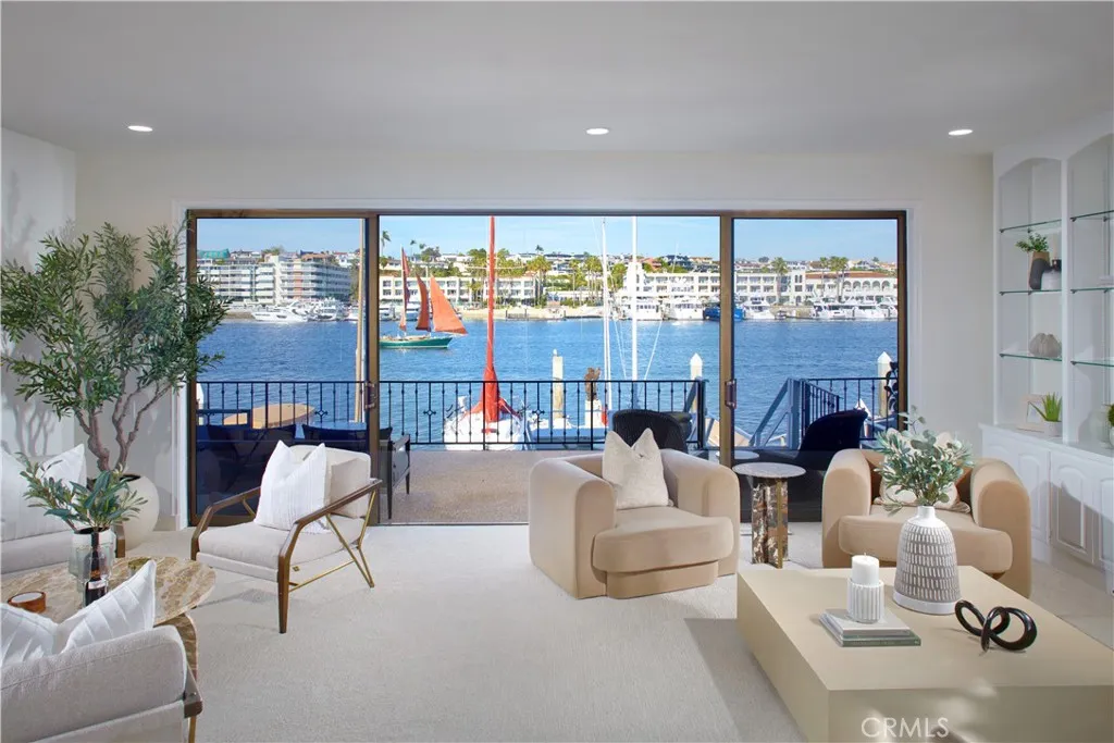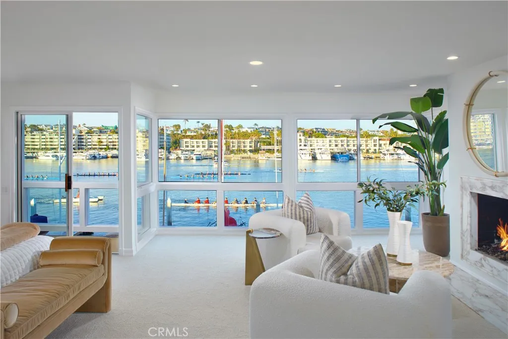 Panoramic views across the sparkling Lido Channel set the tone for this pristine waterfront residence, encompassing approximately 2,956 square feet and presenting a chic, transitional aesthetic suited for relaxed bayfront living. Light-filled interiors unfold across four bedrooms and three-and-one-half bathrooms, highlighted by a main level featuring a fireplace, sweeping staircase with wrought-iron railing, custom built-in shelving flanking the fireplace, and sliding glass doors that frame the ever-changing water views beyond. Stretching across the full 30-foot width of the property, an expansive deck invites effortless indoor–outdoor living and lively waterfront gatherings, flowing seamlessly to a private dock with additional seating space and room for your boat. White cabinetry, a built-in cooktop with range hood, quartz countertops, and top-of-the-line appliances define the well-appointed kitchen, complemented by a tray ceiling with recessed lighting and an inviting breakfast nook. A main-level bedroom with en-suite bath provides convenience and flexibility for guests or multi-generational living. Three bedrooms occupy the second level, including one currently configured as a bonus room with French doors opening to a private balcony. Retreat-like comfort defines the primary suite, where a fireplace, oversized windows, and sliding glass doors lead to a private balcony with far-reaching channel views. Spa-inspired design continues in the primary bath with dual sinks, built-in seating, a soaking tub, and a walk-in shower. Additional highlights include a dedicated upstairs laundry room, fresh interior paint, new carpet, and a two-car attached garage. Located on beloved Lido Isle, residents enjoy access to the community clubhouse, tennis courts, dog park, and exclusive yacht club opportunities—creating a truly special coastal lifestyle.