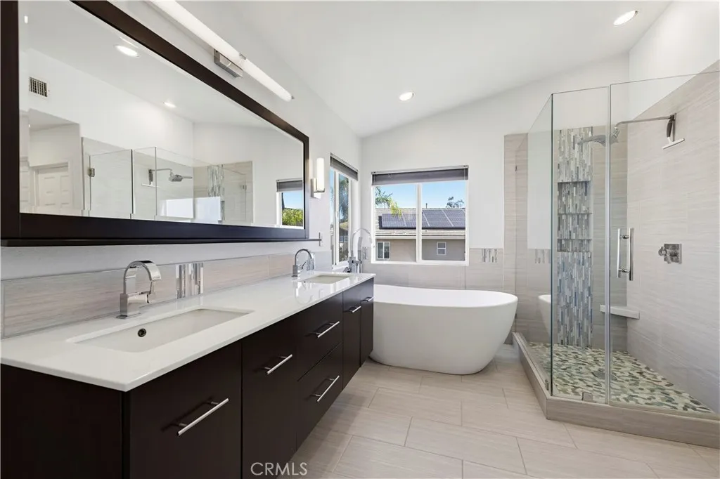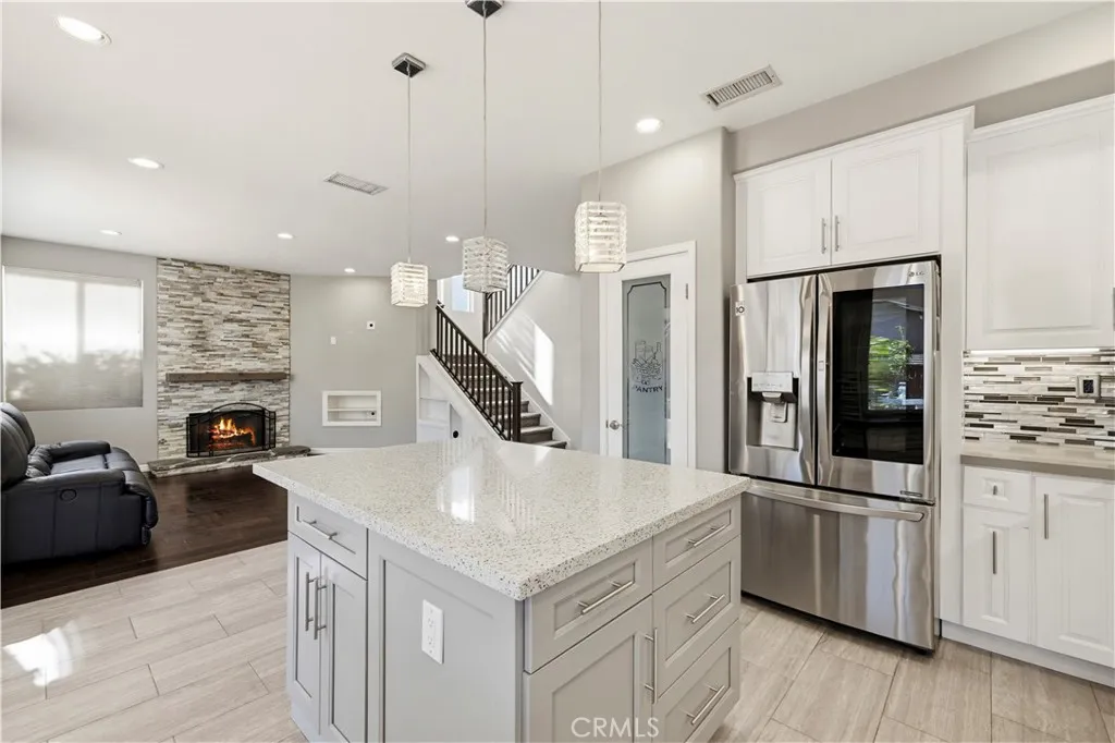Stunning home nestled in the hills of Santa Clarita . As you enter, you’ll find vaulted ceilings with high windows that fill the home with warm natural light. The main level features gorgeous wood flooring in the entry, formal living room, dining room, and family room. The formal dining room sparkles with a beautiful chandelier and opens to the family room, complete with a new fireplace and mantel—perfect for cozy evenings. The exquisitely remodeled kitchen with center island features a glass tile backsplash, Corian countertops, stainless steel appliances, and crisp white cabinetry that keeps everything looking fresh and bright. Upstairs, the spacious primary bedroom leads to a beautifully remodeled primary bath featuring custom tile, elegant fixtures, and a stunning freestanding tub—perfect for relaxing after a long day. A large open loft with wood flooring provides a wonderful extra living space or could easily serve as a 4th bedroom. Both secondary bedrooms are generously sized. The hall bathroom has been tastefully remodeled with a large step-in glass shower and custom tile. Step outside to your private backyard oasis, complete with built-in planters filled with fruit trees, a covered patio, fire pit, built-in barbecue with refrigerator, and low-maintenance artificial turf—ideal for entertaining or simply enjoying the California sunshine. The 3rd car area in tandem garage is currently set up as a work room studio. The neighborhood also features a small pocket park nearby for children and pets to play. And for commuters, the property is conveniently located less than 3 miles from the 14 Freeway.
