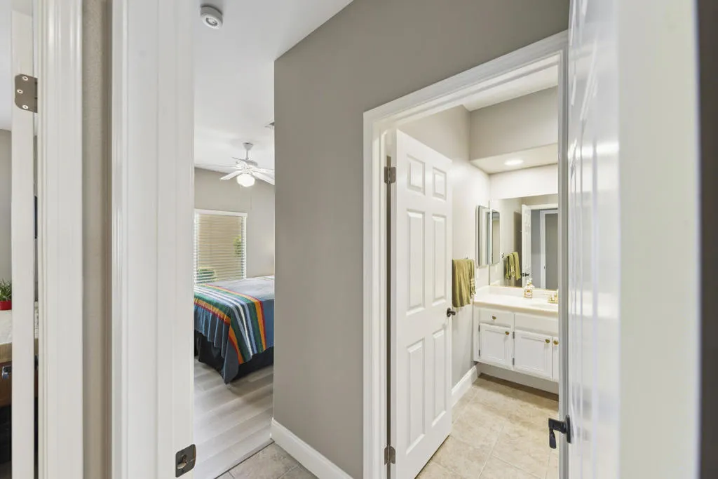 Welcome to Laguna De La Paz, a prestigious guard-gated lake community in the heart of La Quinta, offering the best of desert living. This beautifully updated 3-bedroom, 3-bath home boasts 1,980 sq. ft. of living space on a large, private pie-shaped lot. Step into a spacious great room with a cozy fireplace, adjacent to a flexible dining area or den, and an open-concept kitchen featuring modern updates and a charming breakfast nook.The primary suite is generously sized, offering space for a sitting area, a large walk-in closet, and an ensuite bath with dual vanities, a soaking tub, and a walk-in shower. On the opposite wing, you'll find a private guest ensuite and a third bedroom with an additional full bath--ideal for visitors or a home office. Both the primary bedroom and kitchen feature sliding glass doors that open to a covered patio, perfect for entertaining or enjoying serene mountain views. The backyard includes a grassy area--great for pets or outdoor fun.Community amenities are exceptional: 15 pools, 16 spas, a scenic lake with paddle and electric boats, tennis and pickleball courts, a fitness center, and more. All located near world-class golf, dining, shopping, entertainment, Old Town La Quinta, and the iconic La Quinta Resort & Spa.An ADU might be able to be added. One has been built on a simular lot. Seller and listing agent make no warranties or guarantees. Buyer to check with City of La Quinta.