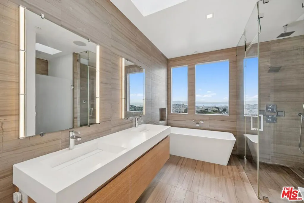 Perched on a prime Noe Valley block, this exceptional residence offers approximately 4,402 sq ft of thoughtfully designed living space and showcases sweeping panoramic views of the San Francisco skyline and bay from multiple levels of the home. Rare in both scale and design, the property features five spacious bedrooms, each with its own ensuite bath, creating a perfect balance of comfort, privacy, and functionality. The main level is designed for both elegant entertaining and everyday living. A dramatic living room with floor-to-ceiling windows opens to a private deck and frames breathtaking city views, seamlessly blending indoor and outdoor living. The adjoining formal dining room flows into the well-appointed kitchen, complete with a large island, wine cooler, and abundant storage. A separate bonus room on this level provides a peaceful home office or reading retreat with tranquil tree-lined outlooks. Upstairs, the primary suite offers a serene sanctuary with generous proportions, a spa-like bath, and spectacular outlooks across the city. Additional ensuite bedrooms on this level provide comfortable accommodations for family or guests while enjoying the home's remarkable vantage point over San Francisco. The lower level introduces a spacious and versatile family room featuring a wet bar and an additional bedroom suite, ideal for guests or extended living. A separate bonus media room offers exceptional flexibility and can serve as a theatre room, entertainment lounge, fitness studio, or private gym. Multiple decks and terraces throughout the home provide inviting outdoor spaces to relax, dine, and take in the dramatic skyline views that transform beautifully from day to night. Located just moments from the vibrant shops, cafes, and restaurants of 24th Street in Noe Valley, this remarkable home offers the perfect balance of neighborhood charm, urban convenience, and elevated city living.