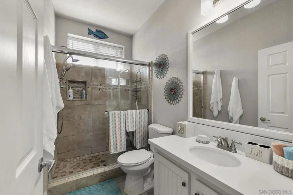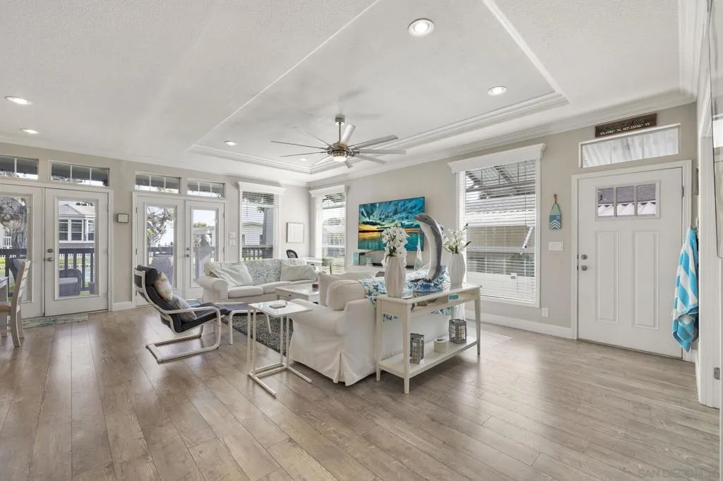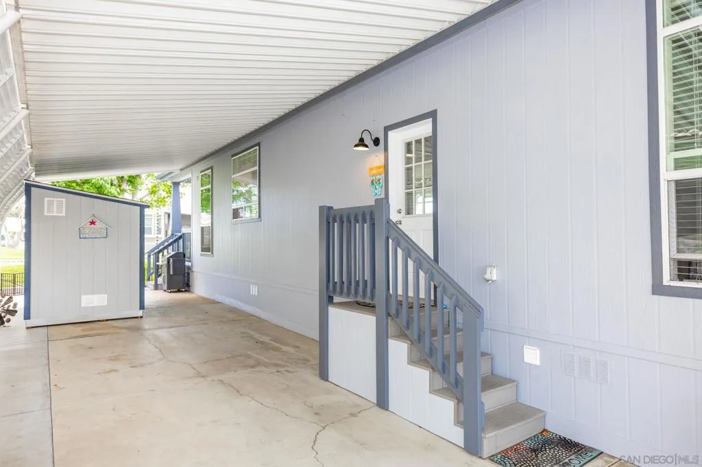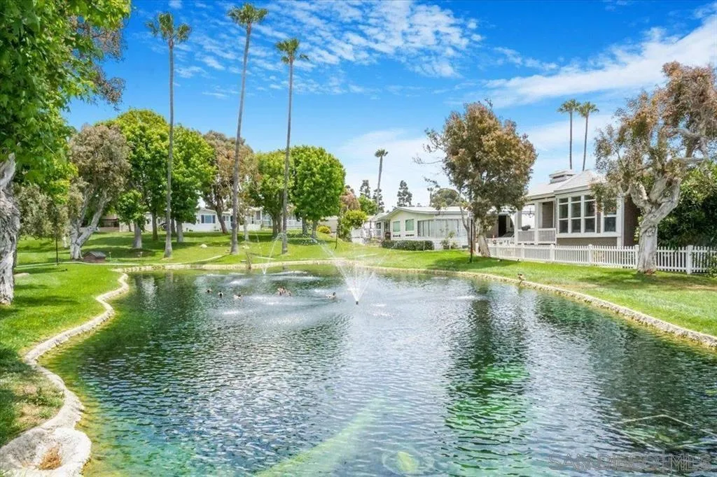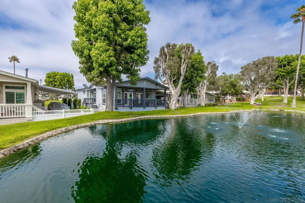 Welcome to paradise with a stunning lake and greenbelt view! Built in 2016, a beautifully maintained three bedroom, two bath manufactured home located in the highly desirable 55+ gated community of Lakeshore Gardens in Carlsbad. A meticulous masterpiece featuring a panoramic view of the greenbelt and lake with a full-length deck across the rear of the home. Furnishings throughout interior are included with the sale! Expansive dual pane windows and double patio doors filling the living and kitchen with natural light. Bright and open floor plan with vaulted ceilings. Spacious open living and dining areas flow into a well-designed kitchen featuring stainless steel appliances, plenty of cabinetry and counter space with an extended island for all your cooking and entertaining needs. Upgraded ceiling fans located throughout the home. Combination air conditioning and heating unit. Primary suite provides a private retreat with ample closet space and main bathroom with a gorgeous tiled shower. An additional bedroom off of the living room has double doors and is perfect for guests, hobbies, or even a home office. Step outside to a large covered deck and low-maintenance yard with artificial turf—ideal for morning coffee, ocean breezes, or gathering with friends. Lakeshore Gardens is one of Carlsbad’s most sought-after 55+ communities offering resort-style amenities including a clubhouse, heated pool, spa, fitness center, and beautifully landscaped walking paths. Plus, coast highway and the beach is just a distance away! Minutes from shopping, dining, and everyday conveniences, this home offers the ideal blend of comfort and lifestyle!