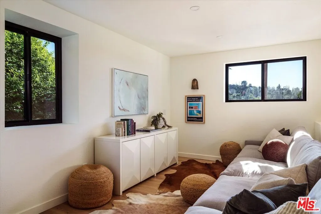 Beautiful spacious Spanish hills home with rolling countryside views and great natural light south of the Boulevard. Completely turn-key with greenery, large decks, built-in BBQ, spa, exceptional privacy, the designer reimagined home features stylish touches and high end finishes tucked away yet just a short drive to Ventura Blvd. New flooring, bespoke light fixtures and hardware, new Milgard windows and sliding glass doors, and an assortment of beautiful tiles adorn this one of a kind home. The kitchen has leathered granite countertops, walnut cabinetry, bronze hardware, leaf tile backsplash, brass light fixtures, all new appliances, accented by open shelving, breakfast nook and adjacent lounge area surrounded by mountain to hills views. On the other side of the home a classic Spanish step down living room lit by wall sconces and a tiled double sided wood burning fireplace. The second fireplace is in the formal dining room with a large sliding glass window with green and hillside views. Upstairs the large primary bedroom suite features its own balcony with mountain and tree views, walk-in closet, and an en suite bathroom clad in limestone, cement, and walnut. Three additional guest bedrooms upstairs and guest bathroom with double vanity, soaking tub, and unlacquered brass hardware are complemented by a built-in reading nook at the top of the staircase framed by a large window and skylight. Dining and lounging deck off of the kitchen, and an additional den space off the larger entertaining deck below with a built-in BBQ and hot tub all in complete privacy with 180 degree deep views of the surrounding green hillsides. Gardens areas below, and additional green spaces and gardens flank both sides of the house. Direct entry two car garage and just a short drive to markets, restaurants, coffee shops, hikes, and more at the bottom of the hill. A stunning Hollywood Hills home south of the boulevard in Woodland Hills.