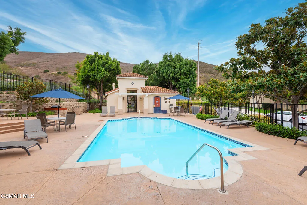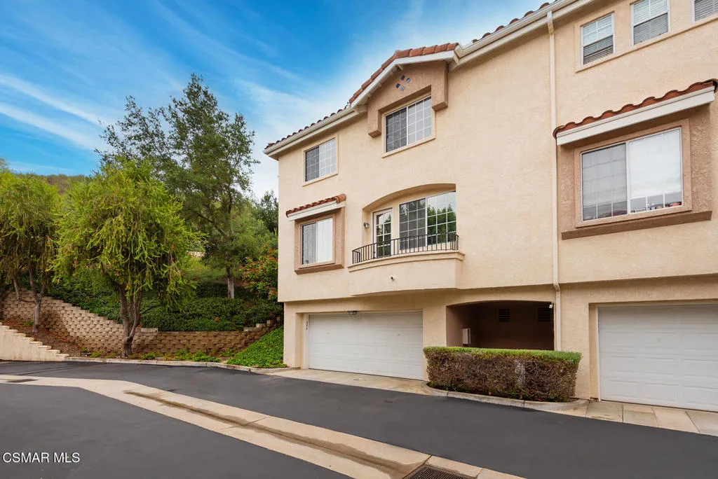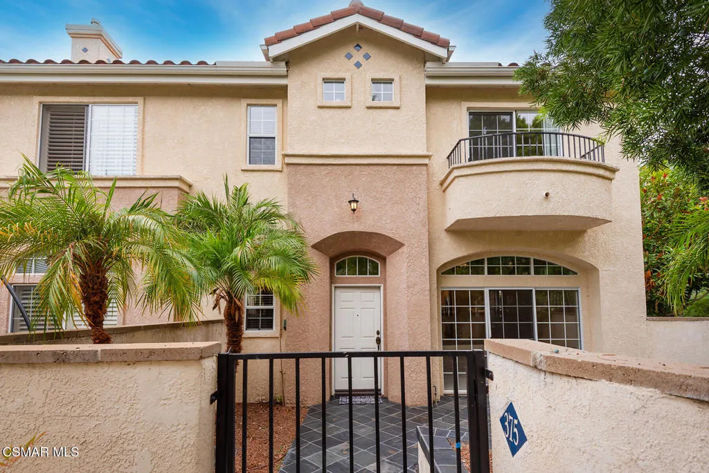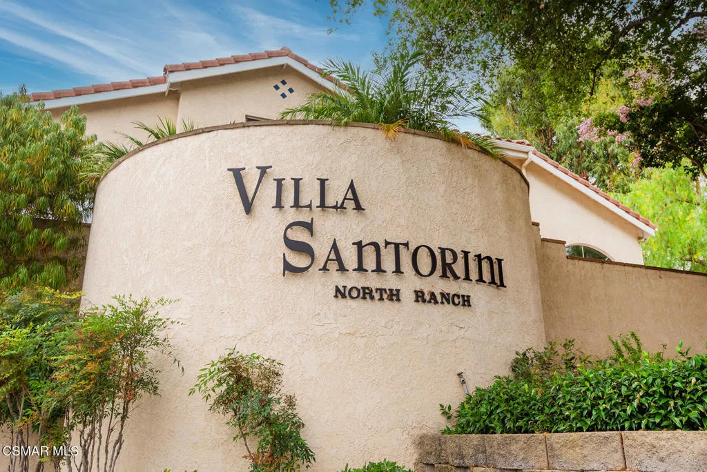 Villa Santorini ~ Discover refined living in this truly beautiful townhome in the highly sought-after Villa Santorini community, offering the comfort and feel of a single-family residence. Perfectly positioned at the end of a quiet cul-de-sac, this exceptional home enjoys peaceful views of the surrounding hills, open space, and the community pool area. The residence offers approximately 2,000 square feet of thoughtfully designed living space, featuring three bedrooms plus a versatile loft/office with built-in cabinetry--ideal for today's work-from-home lifestyle.The light-filled open floor plan creates an inviting atmosphere for both everyday living and elegant entertaining. The home features a welcoming living room with fireplace, a formal dining area, and a beautiful open kitchen that flows seamlessly into the main living areas. Upstairs, the primary suite is a serene retreat with soaring vaulted ceilings and a luxurious bath featuring dual vanities, a separate shower, and an oversized soaking tub. Two additional bedrooms and a full bath complete the upper level, along with the convenience of a private upstairs laundry room. Additional highlights include a newer air conditioning system, a private front patio with stylish tile, and a two-car attached garage. Ideally located near the Civic Arts Plaza, fine dining, great shopping, parks, and award-winning Conejo Valley schools, with easy access to major freeways for effortless commuting. A rare opportunity to enjoy comfort, style, and an exceptional community--truly a wonderful place to call home.