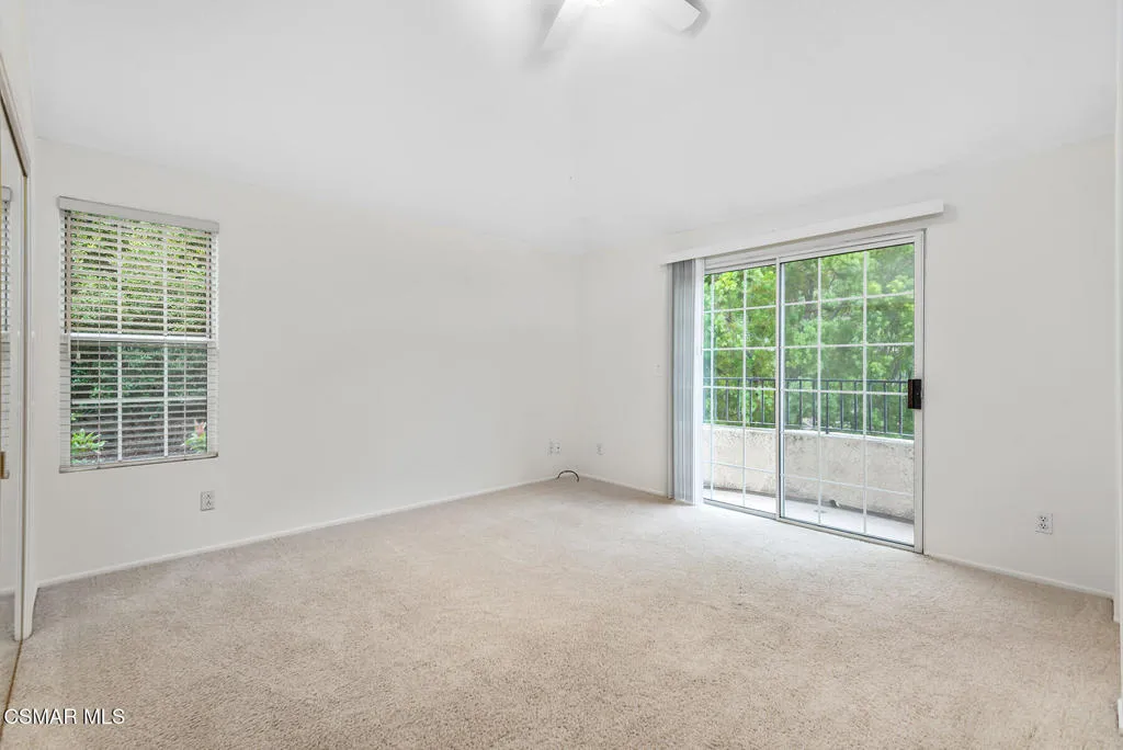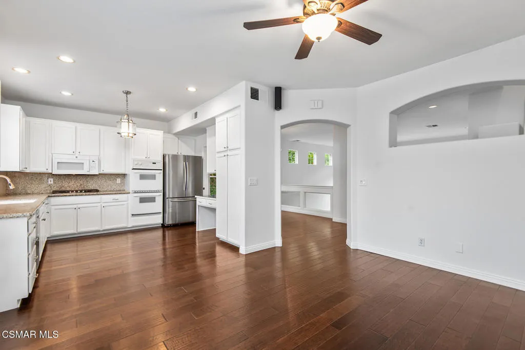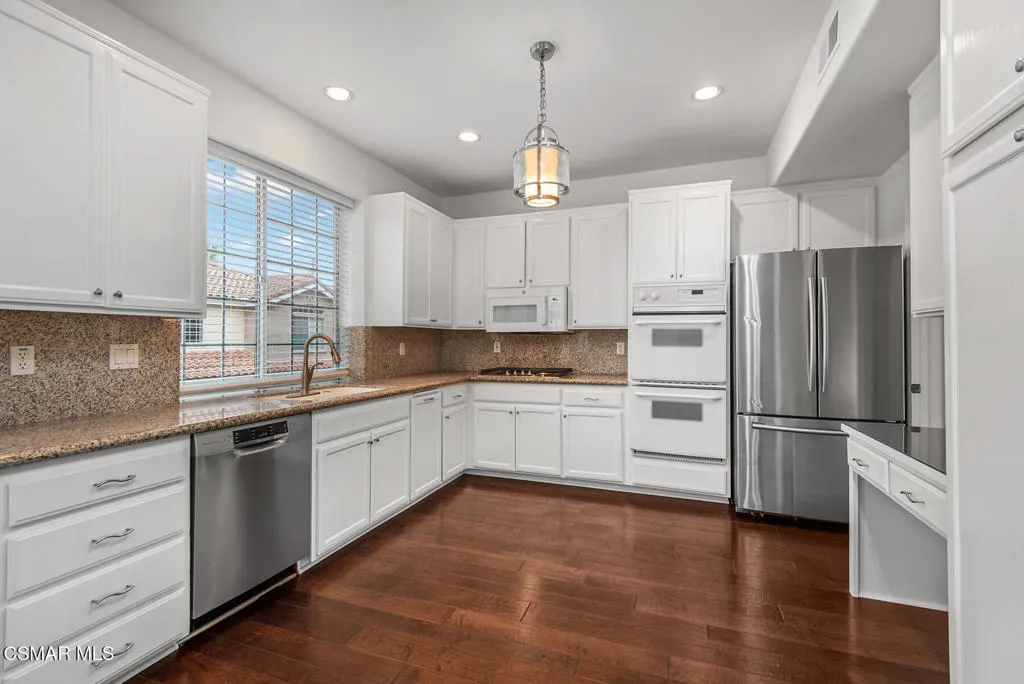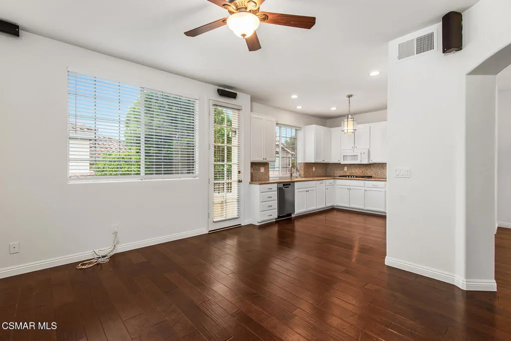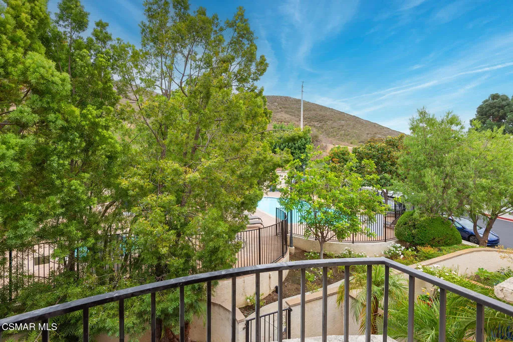 Villa Santorini ~ Discover refined living in this truly beautiful townhome in the highly sought-after Villa Santorini community, offering the comfort and feel of a single-family residence. Perfectly positioned at the end of a quiet cul-de-sac, this exceptional home enjoys peaceful views of the surrounding hills, open space, and the community pool area. The residence offers approximately 2,000 square feet of thoughtfully designed living space, featuring three bedrooms plus a versatile loft/office with built-in cabinetry--ideal for today's work-from-home lifestyle.The light-filled open floor plan creates an inviting atmosphere for both everyday living and elegant entertaining. The home features a welcoming living room with fireplace, a formal dining area, and a beautiful open kitchen that flows seamlessly into the main living areas. Upstairs, the primary suite is a serene retreat with soaring vaulted ceilings and a luxurious bath featuring dual vanities, a separate shower, and an oversized soaking tub. Two additional bedrooms and a full bath complete the upper level, along with the convenience of a private upstairs laundry room. Additional highlights include a newer air conditioning system, a private front patio with stylish tile, and a two-car attached garage. Ideally located near the Civic Arts Plaza, fine dining, great shopping, parks, and award-winning Conejo Valley schools, with easy access to major freeways for effortless commuting. A rare opportunity to enjoy comfort, style, and an exceptional community--truly a wonderful place to call home.