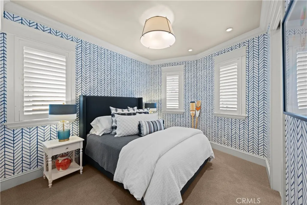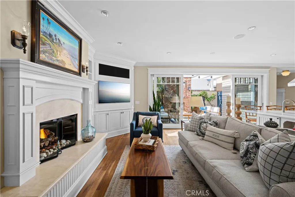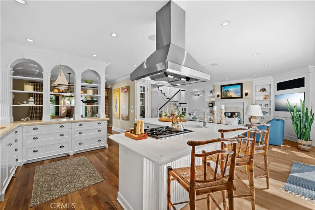 Extraordinary secluded residence completely rebuilt in 2008 by elite builder Craig Pettigrew, this stunning 3 bedroom / 4 bath Coastal Contemporary Cape Cod home is situated on the prestigious Treasure Island on an oversized corner lot. The home was further extensively upgraded over the past two years through the installation of a new Da Vinci slate roof with copper trim and downspouts, along with new custom window casings, trim, moldings and cedar siding – all adding to the alluring curb appeal. On the interior of the home, the current owners also added new grass cloth wallcoverings and updated the two guest bedrooms and various light fixtures. The enchanting, private back terrace features a magnificent brick fireplace, outdoor Viking BBQ and plenty of room to entertain year-round! A gated courtyard and charming porch lead to a lead-glass front door opening into a spectacular living room highlighted by vaulted ceilings, an abundance of windows and sumptuous wood floors. The adjacent great room features a warm and inviting family room with a focal point fireplace flanked by beautiful built-ins and a subterranean level wine and spirits cellar, a formal dining area with custom shelving and sliding door access to the courtyard, and a fabulous chef’s kitchen with professional appliances, Carrara marble and travertine counters and custom cabinetry. The home is set up with a surround sound system inside and outside with separate sound controls in each room for seamless music entertainment. The upper level features a serene primary bedroom retreat with fireplace surrounded with custom built-ins, vaulted ceilings, chandeliers, walk-in closet and spa-like bathroom. The two additional bedrooms are both ensuite with each of their own full baths, and an adjacent hang-out space with desk area and custom built-ins (plenty of storage) with a peek-a-boo view of the canals from the balcony. The residence is of unparalleled quality and craftsmanship with extensive custom wood panels, crown moldings and shutters throughout. The home is perfectly located between romantic Naples Canal and picturesque Alamitos Bay, and just a short distance to unique dining, world class shopping and nightlife! Enjoy the Indoor/Outdoor Lifestyle of Naples Islands and Treasure Island.