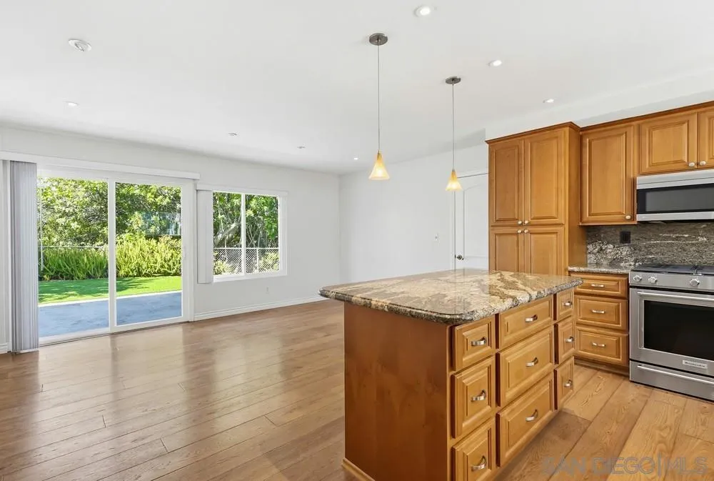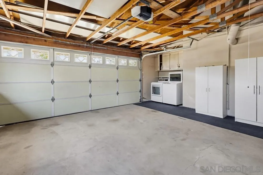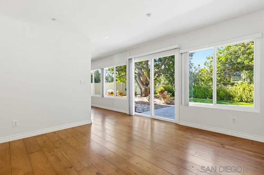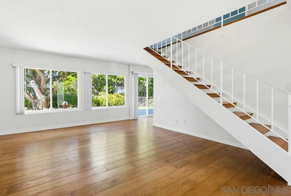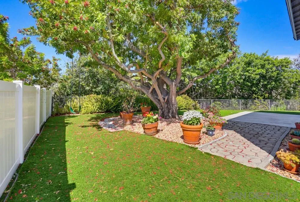 Nestled on a quiet, low-traffic street with lush tropical landscaping, this stunning residence offers peace and privacy in one of San Diego’s most beloved and established communities. Step through the dramatic dual-entry front doors and you’re immediately greeted by sweeping, panoramic views through wall-to-wall glass that flood the main level with natural light. Step outside into the beautifully maintained, spacious yard, perfect for relaxing or entertaining. The renovated kitchen is designed for everyday living and gatherings, featuring a center island, abundant cabinetry, and a dedicated dining area just steps away. A convenient large downstairs bedroom includes dual mirrored closets and an updated bathroom with marble shower and flooring. Sliding glass doors open directly to the backyard, creating a seamless indoor-outdoor flow. Upstairs, 3 additional bedrooms provide comfortable accommodations for family, guests, or a home office. The layout offers flexibility and privacy, with ample natural light and storage space throughout. Additional highlights include new central air conditioning and heating, wood floors, refrigerator, washer and dryer, an oversized attached two-car garage, and a built-in workbench. Ideally located, this home is a short walk to Mission Trails Regional Park, the Allied Gardens Recreation Center and pool, and top-rated neighborhood schools. This home offers the perfect balance of comfort, convenience, and the best of San Diego living.