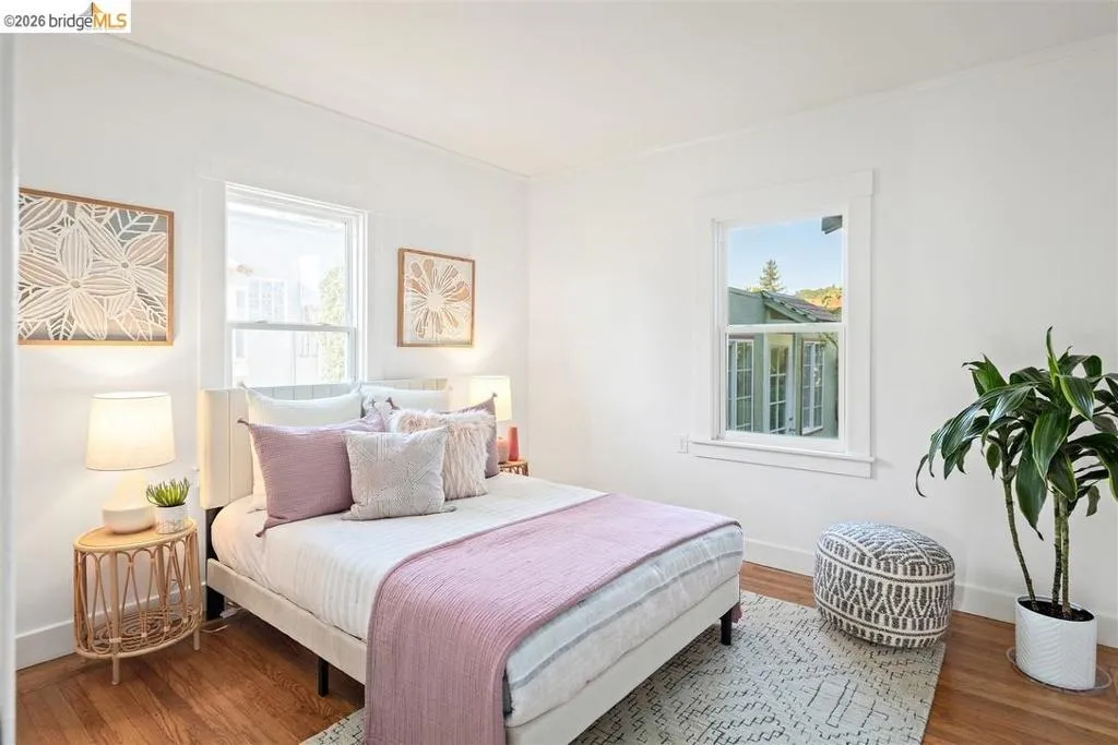 Sunny home on a quiet street in North San Leandro, just blocks from Zocalo Coffeehouse, As Kneaded Bakery, Safeway, and other neighborhood conveniences that make everyday living easy. Expanded in 2008, this classic Craftsman bungalow embodies the San Leandro lifestyle, featuring hardwood floors, built-ins, and generous windows that fill the interior with natural light while integrating thoughtful modern updates that honor the architectural character of its period. At the heart of the home, the well-appointed kitchen anchors the main living space, thoughtfully designed for both beauty and function. The primary suite is privately positioned at the rear of the home, overlooking the garden, and features a spa-like bath and ample closet space. Two additional bedrooms and two bathrooms complete the well-balanced layout. Outside, a detached studio/office provides flexible space for work, hobbies, or creative pursuits. The spacious backyard features a patio, fruit trees, and a two-car garage—all ideal for gardening, relaxation, and weekend projects. Solar enhances energy efficiency, and the property is located within the San Leandro School District. Offering beauty, location, and thoughtful amenities, this home is the perfect fit for every stage of life. Open 3/14-15 2-4PM