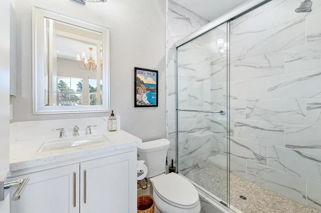 Sophisticated coastal living awaits within the exclusive gated community of The Enclave at Bayonet Black Horse. Perfectly positioned along the golf course, this thoughtfully designed residence enjoys serene views of mature trees and manicured grounds. Offering four bedroom suites, including one on the main level, the home showcases meticulously curated finishes such as high-end kitchen appliances, marble in the bathrooms, warm wood flooring, custom lighting, and a soft, sophisticated palette throughout. The open-concept design is enhanced by two fireplaces and dramatic floor-to-ceiling glass doors that fully open to the outdoor living space, creating seamless indoor-outdoor flow. Designed for both relaxation and entertaining, the backyard features a putting green, bocce court, built-in BBQ with outdoor bar, and a covered dining patio. Located in the coastal community of Seaside, this exceptional home pairs elevated design with effortless beachside living.
