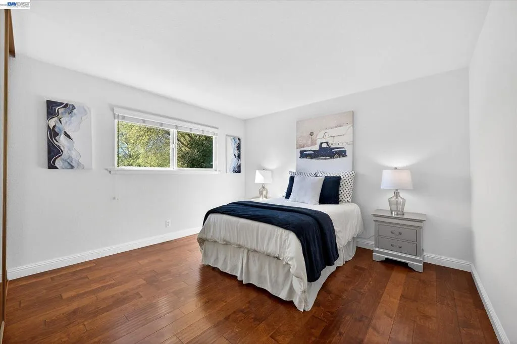 Charming two-story Pleasanton home right next to Muirwood Community Park with 5 bedrooms and 3 bathrooms, including a private main-floor bedroom for guests or extended stay. A newer roof installed in 2019 adds valuable peace of mind. Vaulted ceilings and a brick fireplace warm the living room, which flows into the dining area and bright family room. Hardwood floors run throughout. The kitchen features granite countertops, a large island with gas range, stainless steel appliances, built-in cabinetry, and open storage. Upstairs, the primary suite offers his and her closets and an en-suite, while three bedrooms share a bath and a convenient hallway laundry chute. Step outside to a backyard made for relaxing and entertaining, with two wooden decks, a paver patio, a 10 x 12 shed for storage, citrus trees, and side yard access for an RV or boat. A backyard gate opens directly to Muirwood Community Park near the popular pickleball and tennis courts. Morning coffee, weekend barbecues, or summer evenings feel extra special here. Enjoy nearby parks, shopping, dining, and easy access to I-680 and I-580 while soaking in all that Pleasanton has to offer. Broker's Tour Fri, Mar 27, 10:30-1p | Open House Sat & Sun, Mar 28-29, 1-4p