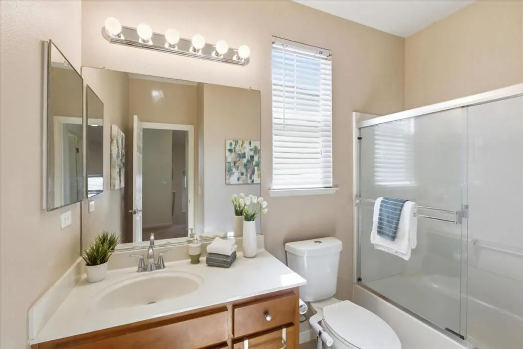 Welcome to beautiful living in the heart of Gilroy! For the price of a condominium, enjoy the privacy and comfort of a single-family home. This 3-bedroom, 2.5-bath, two-story home offers a side-by-side 2-car garage and approximately 1,497 sq. ft. of bright, open living space in the desirable Oak Commons Community. Natural light fills the thoughtfully designed floor plan. The spacious living area features a cozy fireplace, perfect for relaxing evenings. The well-appointed kitchen offers ample counter space and cabinetry, seamlessly connecting to the dining and living areasideal for everyday living and entertaining. Upstairs, the primary suite provides a private retreat with an en-suite bath and generous closet space. Two additional bedrooms offer flexibility for family, guests, or a home office. Additional highlights include an indoor laundry room, attached two-car garage, and solar for energy efficiency. The low-maintenance backyard is perfect for easy outdoor enjoyment. Community amenities include a pool, greenbelt, playground, and guest parking. Conveniently located near schools, shopping, dining, and major commuter routes, this move-in-ready home offers comfort and convenience.