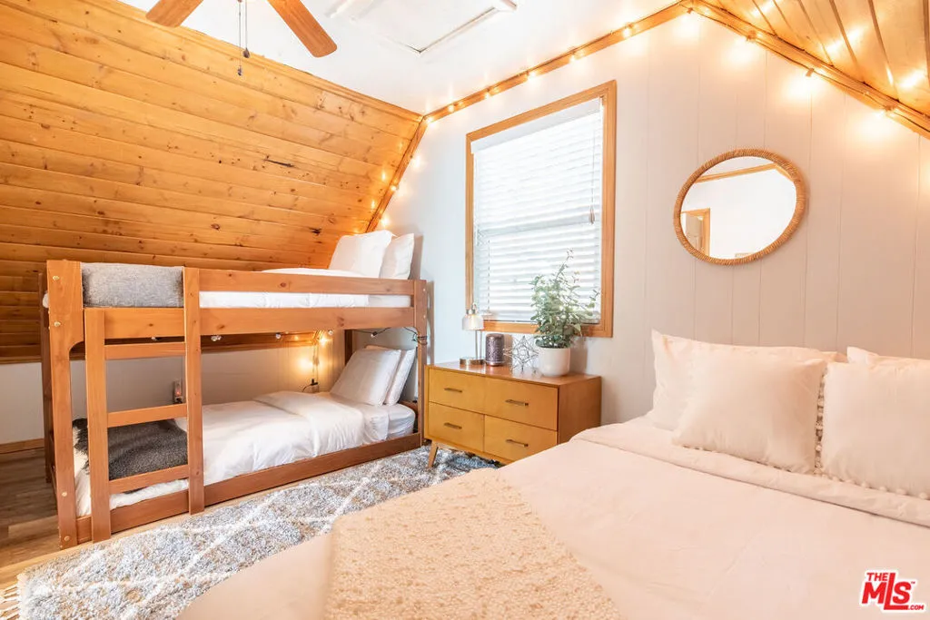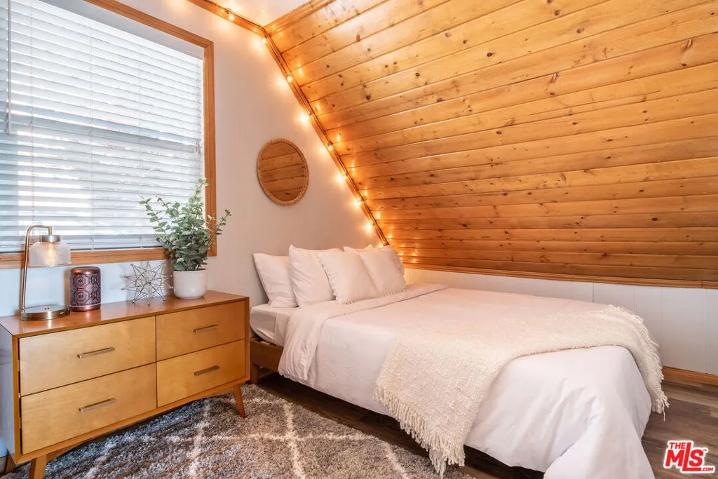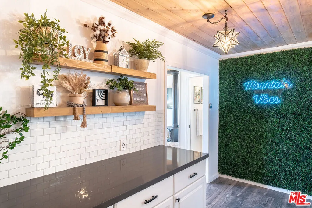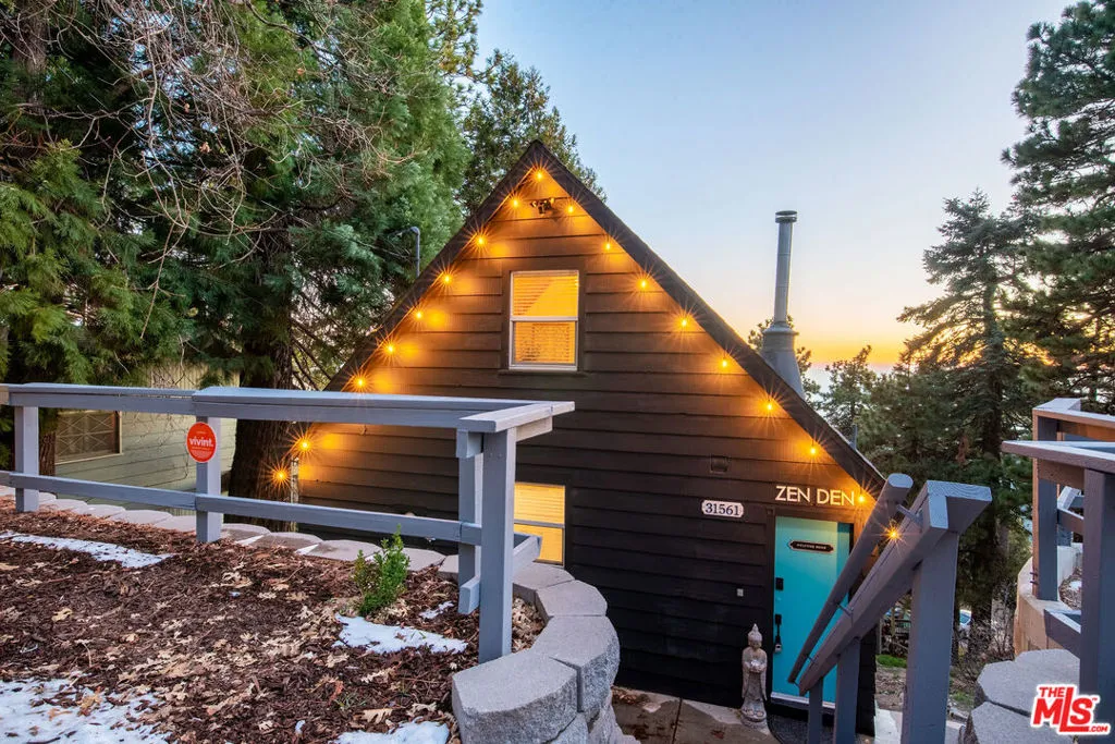 Enjoy the peaceful surroundings and breathtaking beauty of the mountains from two decks, as you take in awe inspiring panoramic views, in the middle of mature pine trees. Step inside to a warm and inviting living area. The fully equipped kitchen is a haven for culinary enthusiasts featuring stainless stell appliances, a farmhouse sink, quartz countertops and upgraded flooring. A wood burning stove will help to warm the house during those cool winter days. Both bedrooms were designed with comfort in mind, with a half bath in between. The main bathroom is sleek and modern, offering a spa-like experience. The home is on a quiet street and walking distance to the town of Running Springs, one of the best hidden gems, with plenty of activities year round. Whether you're a hiking enthusiast, a skiing professional, or simply looking to explore nearby shops and restaurants, there are endless opportunities a short drive away. Make this your starter home or a weekend getaway that you can also short term rent on the side. There is an EV charger on the property, and a spacious storage area underneath with new laundry equipment