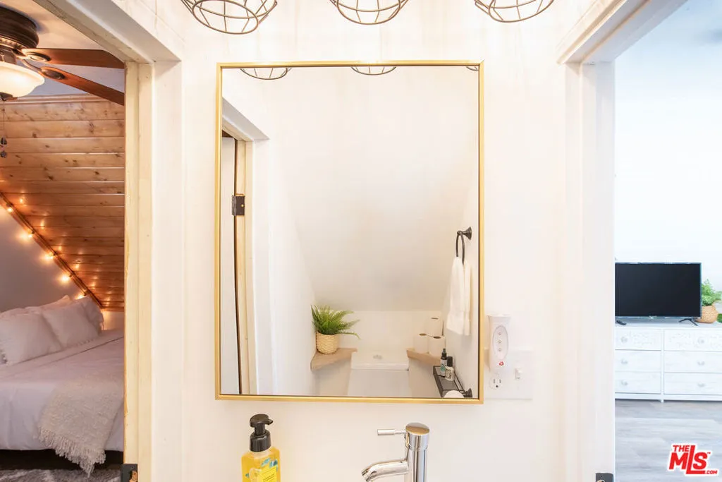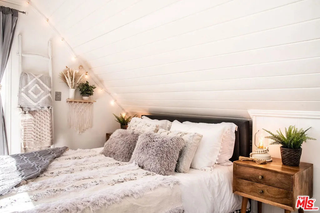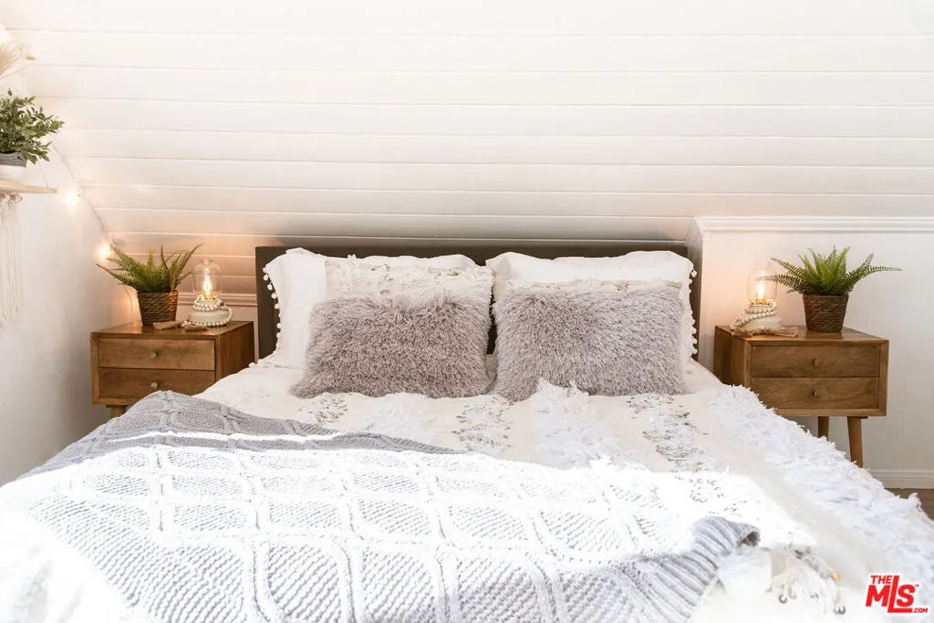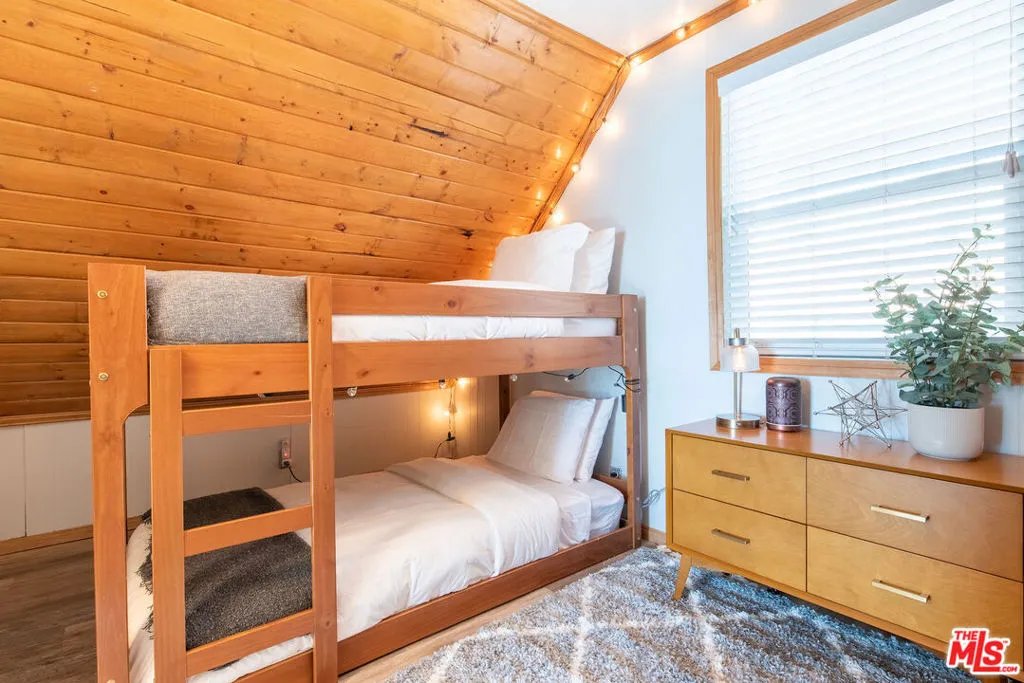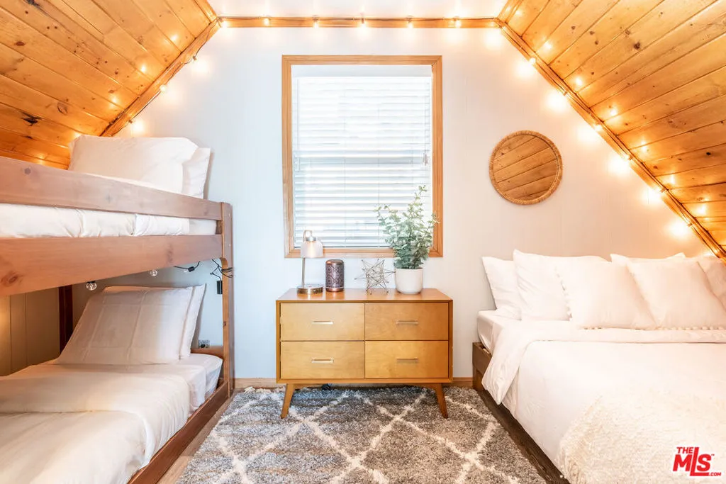 Enjoy the peaceful surroundings and breathtaking beauty of the mountains from two decks, as you take in awe inspiring panoramic views, in the middle of mature pine trees. Step inside to a warm and inviting living area. The fully equipped kitchen is a haven for culinary enthusiasts featuring stainless stell appliances, a farmhouse sink, quartz countertops and upgraded flooring. A wood burning stove will help to warm the house during those cool winter days. Both bedrooms were designed with comfort in mind, with a half bath in between. The main bathroom is sleek and modern, offering a spa-like experience. The home is on a quiet street and walking distance to the town of Running Springs, one of the best hidden gems, with plenty of activities year round. Whether you're a hiking enthusiast, a skiing professional, or simply looking to explore nearby shops and restaurants, there are endless opportunities a short drive away. Make this your starter home or a weekend getaway that you can also short term rent on the side. There is an EV charger on the property, and a spacious storage area underneath with new laundry equipment