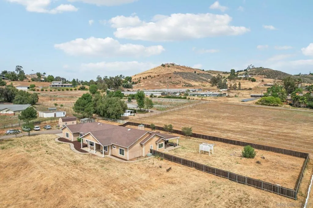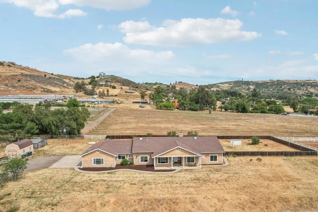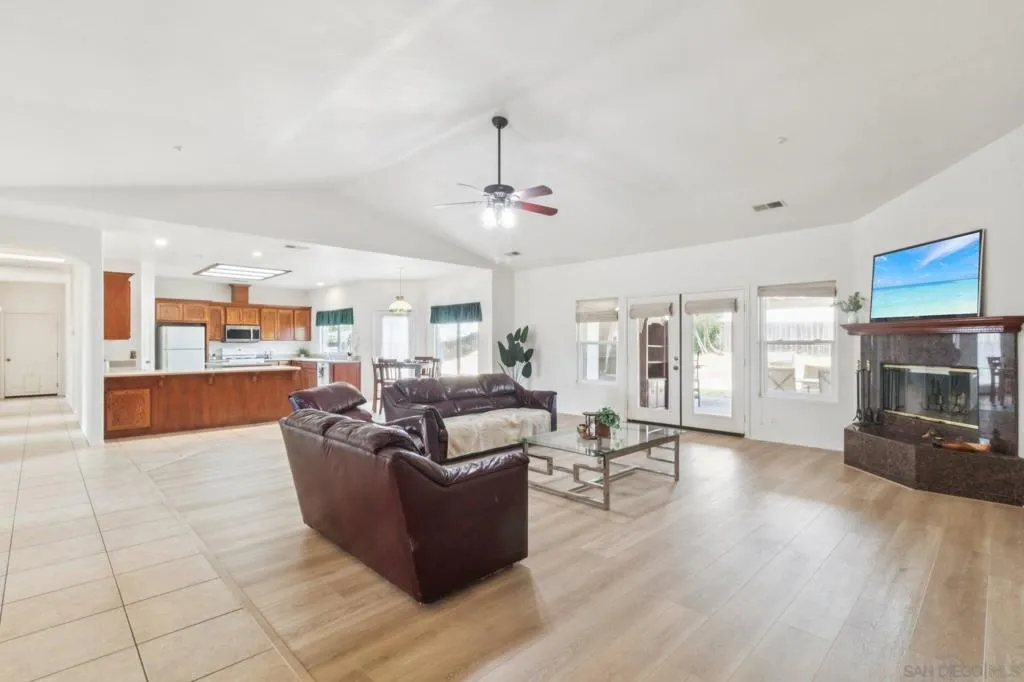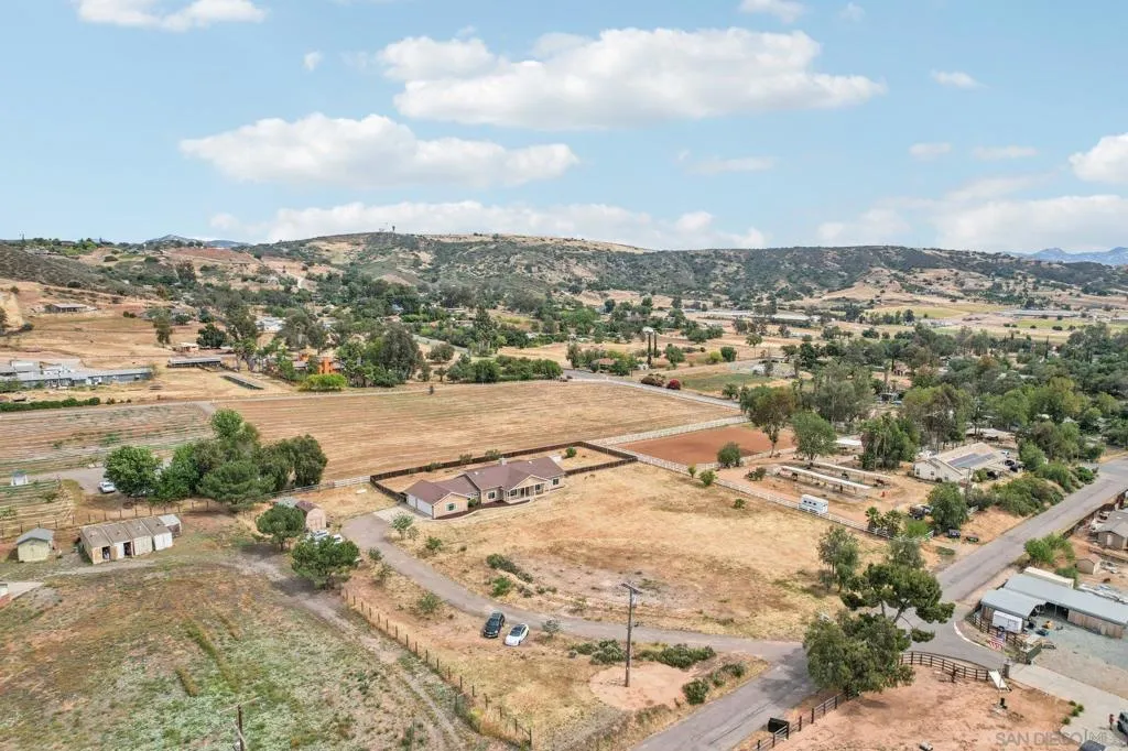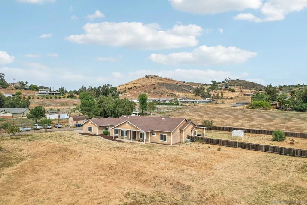 Single-level 4 spaceous bedrooms plus a large office/game toom 3 bath, 3,008 sq ft home on 2.25 acres of flat, usable land with peaceful mountain views. Quality construction throughout with wide doors, bullnose corners, curved archways, 9 ft ceilings, skylights, recessed lighting, and four ceiling fans. Spacious island kitchen with Corian counters top, walk-in pantry, and breakfast bar. Large great room with fireplace and French doors leading to the back patio. Primary suite includes French doors, walk-in closet, cultured marble tub and sinks, and a spacious bedroom layout. Additional bedrooms are generously sized. Wide 4-ft hallway with sconces, dedicated office, and full laundry room. Finished, insulated 3-car garage with storage shelves. Property offers room for horses, chickens, RV parking, and additional uses, subject to local guidelines. Quiet, serene setting with open, usable land. Enjoy your everyday beautiful setting inside, and out side mountain views. Single-level home with wide doors and spacious bedrooms on 2.25 acres of flat, usable land. Quality construction with 9 ft ceilings, skylights, curved archways, and a large island kitchen. Finished 3-car garage with storage and room for RV parking. Property offers open land suitable for horses, animals, gardens, or future improvements, buyer to verify all uses with County of San Diego. Septic, and all systems maintained by long-term owners. Quiet, private setting with mountain views and easy access to town. All information deemed reliable but not guaranteed; buyer and buyer’s agent to verify all before COE.