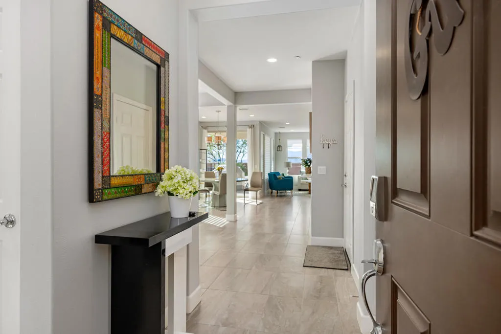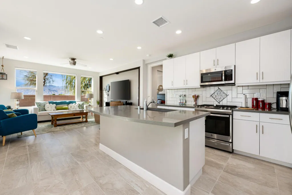 With an open-concept floorplan and thoughtful upgrades throughout, this Muros floor plan offering 2BR/2BA + office with built-ins. Offering flexible living space with a large open great room that includes an entertainment area wall and dining area, that makes a stunning use of space. At the heart of the home is a gorgeous kitchen with upgraded cabinetry and drawers, quartz countertops with glass tile backsplash, and an intimate island where your guests can sit and chat while you prep and chop. You'll fall in love with the spa-inspired primary bath with tile flooring, a gorgeous double vanity with framed mirrors, and upgraded shower. The guest sweet is private and Brite, the guest bath has a tub shower combo. Garage with epoxy flooring and 220 in the garage for your car charger. You will fall in love with the rear patio outdoor living space. Offering one of a kind outdoor living with awning. The open park-like setting is unlike most condo locations, with SOUTH unobstructed mountain views. This home is clubhouse close, Immaculate inside and out and a must. Call Michael for your showing today.