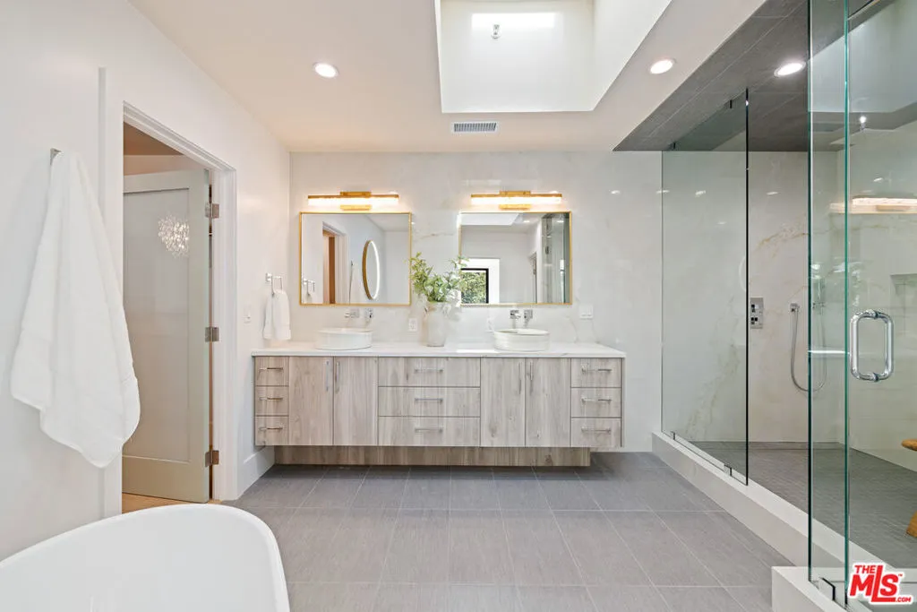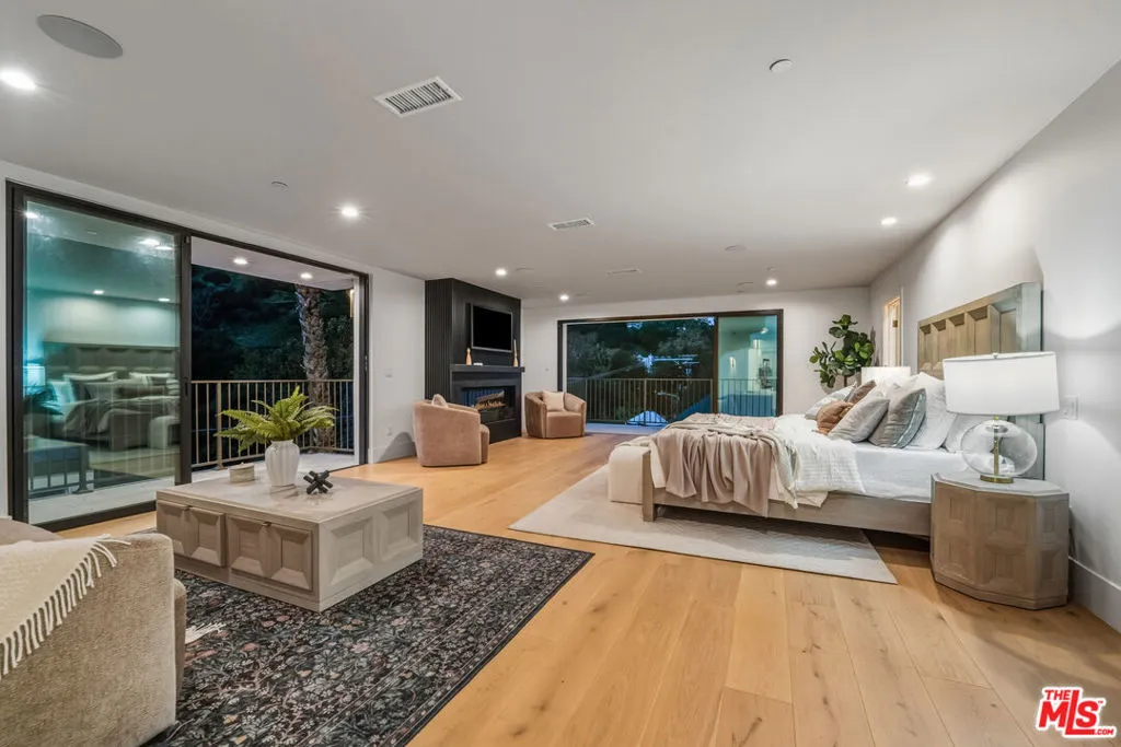 Architectural and artistic pedigree converge at this striking reimagined modern residence in lower Nichols Canyon once home and studio to acclaimed National Geographic photographer Gerd Ludwig. Originally designed by Youssef H. Amin, AIA, this 5BD/8BA estate features soaring ceilings, floor-to-ceiling windows, gallery-style entertaining spaces, and seamless indoor-outdoor flow with breathtaking canyon views from every room. The expansive primary suite offers a fireplace, two private terraces, an oversized walk-in closet with center island, and a spa-like bathroom bathed in natural light featuring dual vanities, a freestanding tub, and dual showers, one with a built-in steam option. Additional ensuite bedrooms showcase curated designer finishes throughout. Both living levels also include custom wet bars with wine refrigerators, elevating the home's entertainment potential. Step outside to a newly constructed entertainer's dream: an expansive deck with a sparkling pool, built-in BBQ, and bar seating, offering the ideal backdrop for alfresco dining and sunset lounging. Additional amenities include an elevator from the garage to the main entrance and a spacious two- car garage. Private, gated, and just minutes from Hollywood, Runyon Canyon, and the Sunset Strip, this home is a rare fusion of creative legacy, refined design, and modern luxury in the heart of the Hollywood Hills.