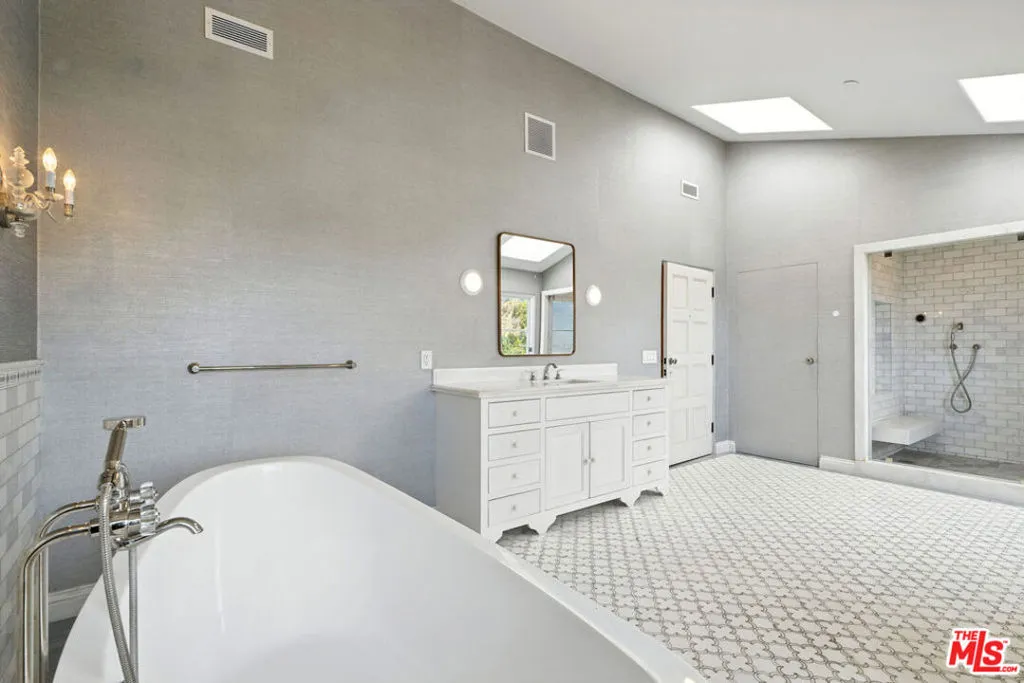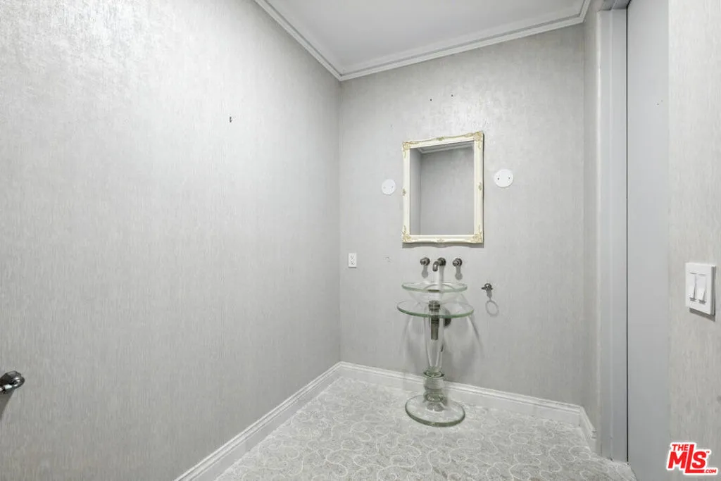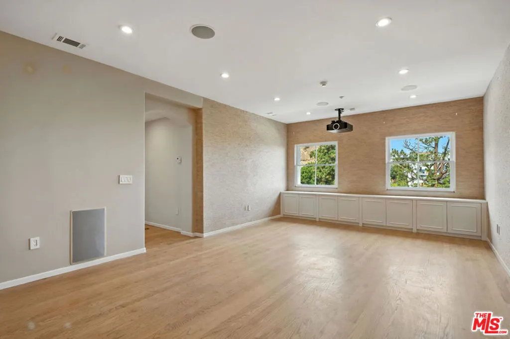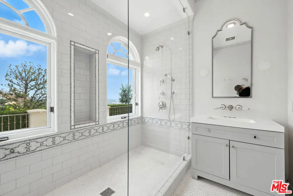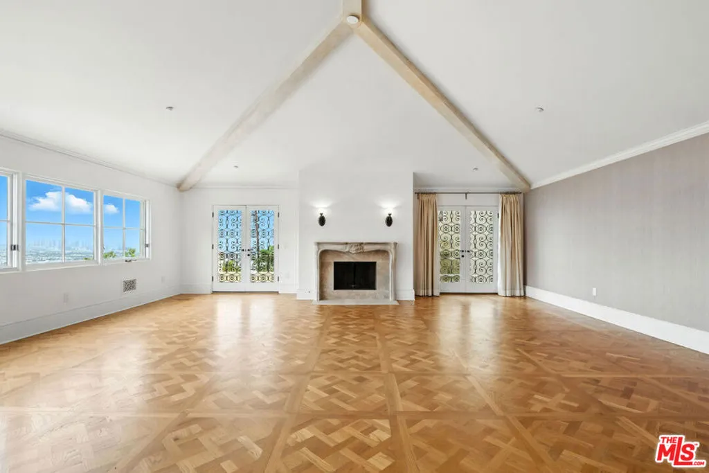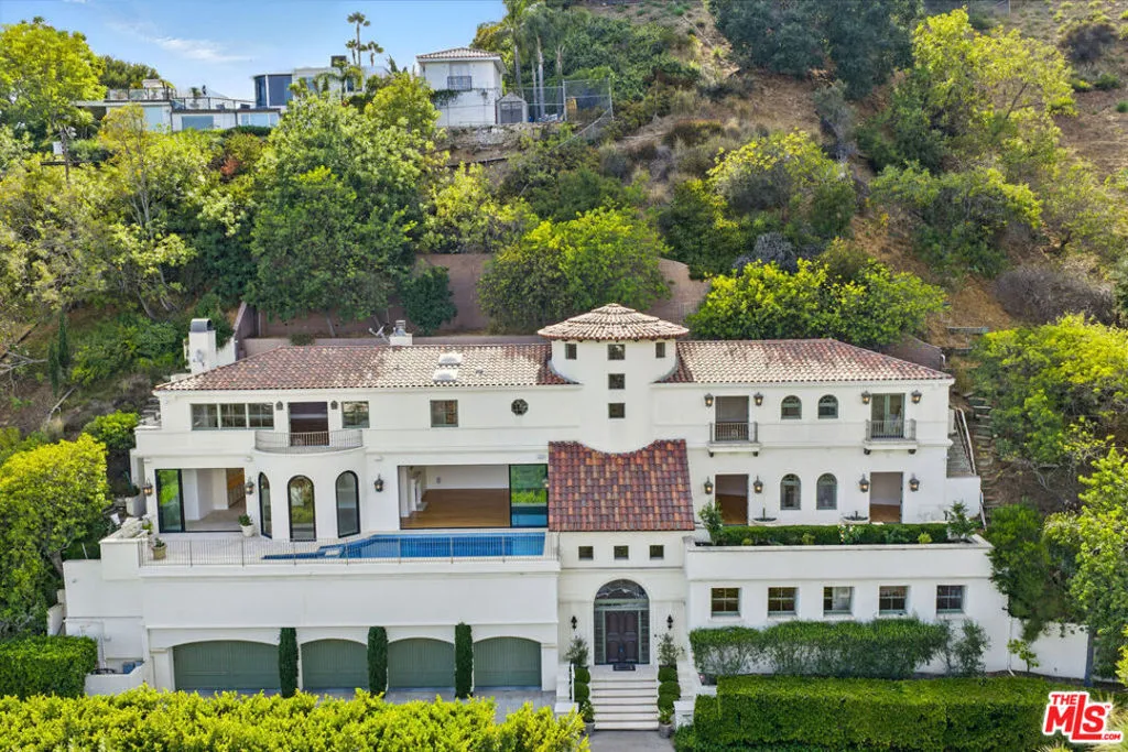 Set above the Chateau Marmont on a quiet cul-de-sac, this 6,687 square foot estate delivers scale, privacy, and unobstructed city views rarely found at this price. A dramatic two-story entry and sweeping staircase introduce the home, with an elevator connecting all three levels for seamless living. Twelve-foot ceilings, Euroline doors, and expansive glass frame panoramic vistas from nearly every room and open to multiple terraces and a mosaic-tiled pool and spa.The main level includes a large living room with terrace access, a formal dining area, and a chef's kitchen outfitted with Sub-Zero, Thermador, and Miele appliances. Upstairs, the primary suite offers 16-foot ceilings, a fireplace, steam shower, soaking tub, sauna, dual closets, and two private terraces positioned for sunrise and sunset views. Three additional en-suite bedrooms complete the floor.Additional features include a media room, office with its own terrace, interior laundry room, a tranquil garden with mature lemon trees, and a four-car garage with additional parking. Minutes from the Sunset Strip yet completely private, this home combines space, scale, and views in one of the most coveted pockets above West Hollywood. Flexible leasing terms.