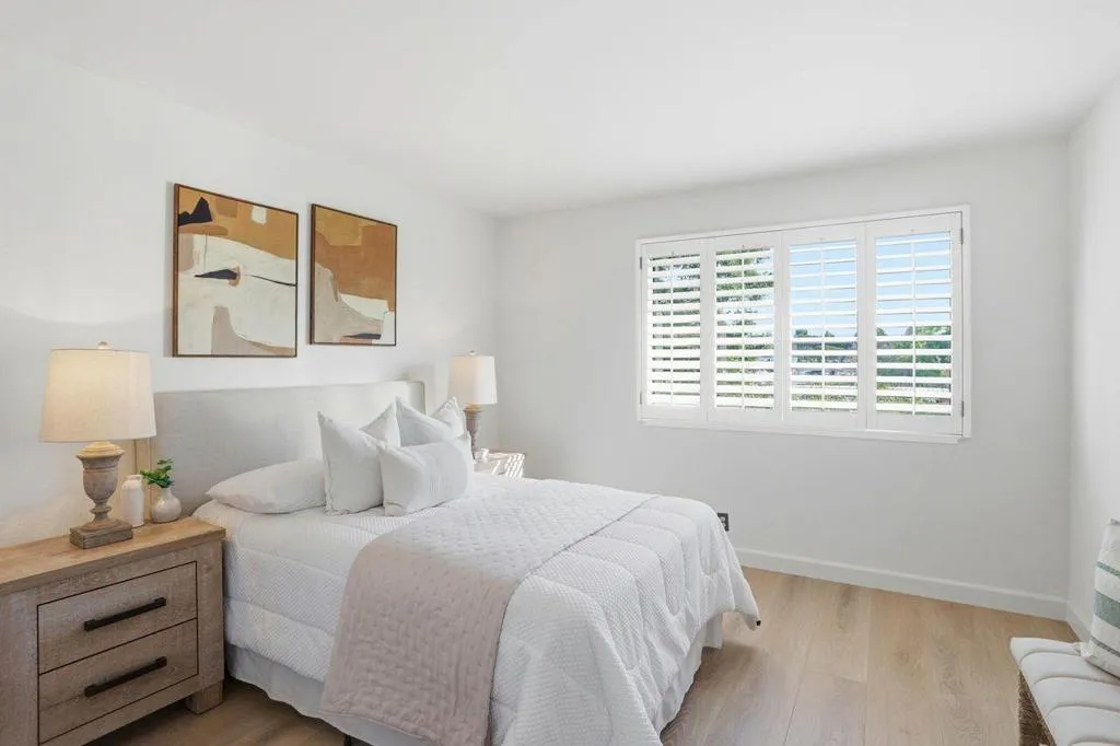 Welcome to this light and bright Palo Alto condo located in the highly sought-after Greenhouse community, known for its beautifully maintained grounds and access to award-winning Palo Alto schools. Perfectly positioned near local shops and dining, this top-level residence offers privacy and ease of living. Step inside to discover new flooring throughout and a spacious living area filled with natural light. Sliding doors in the living room open to a private patio overlooking the relaxing pool and well-maintained grass area. The kitchen features ample storage, a classic subway tile backsplash and plenty of counter space. A separate dining area offers serene views of the mature landscaping outside, enhanced by plantation shutters. Two generously sized bedrooms are filled with natural light and offer large storage closets along with plantation shutters for added charm. As a top-level unit, this home enjoys added privacy and an abundance of sunlight. Additional amenities of the home include new fixtures, in-unit laundry and a private garage. Ideally located with easy access to Stanford, Downtown Palo Alto, Downtown Los Altos and local tech companies. Community amenities include a pool, BBQ areas, clubhouse and an exercise course.