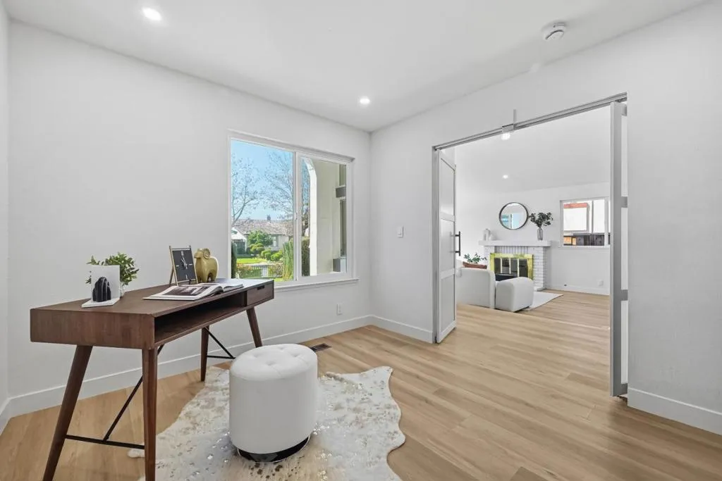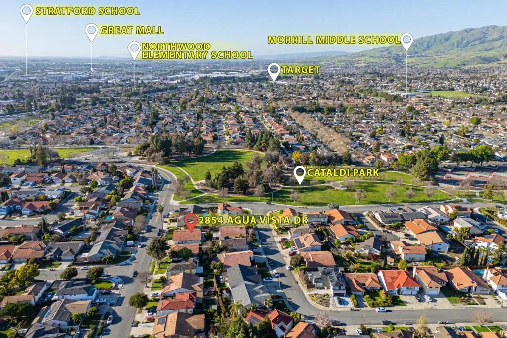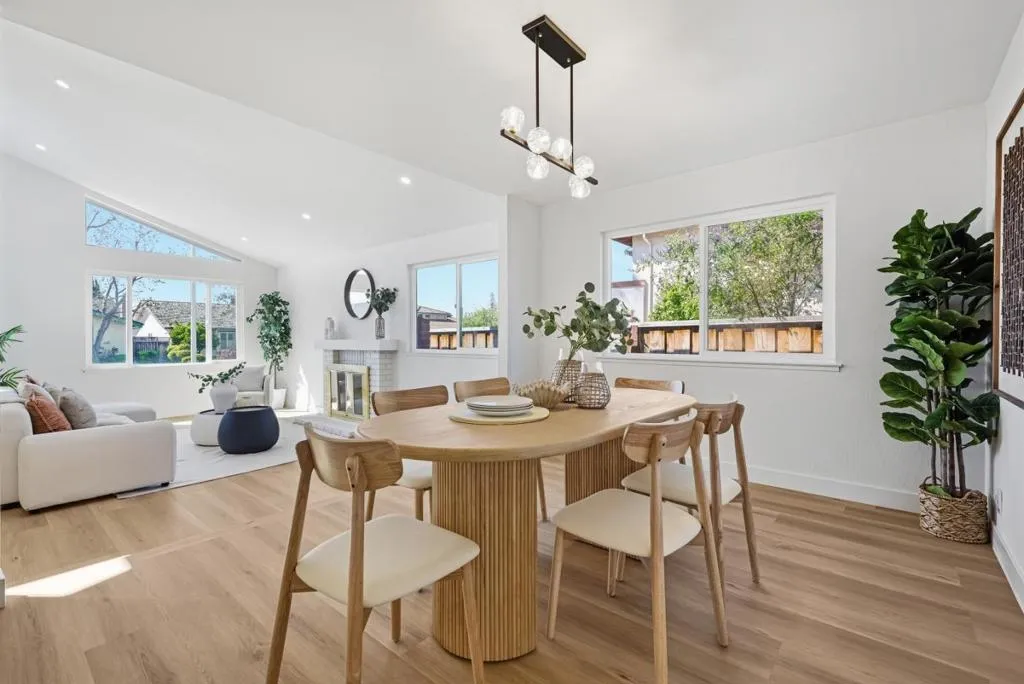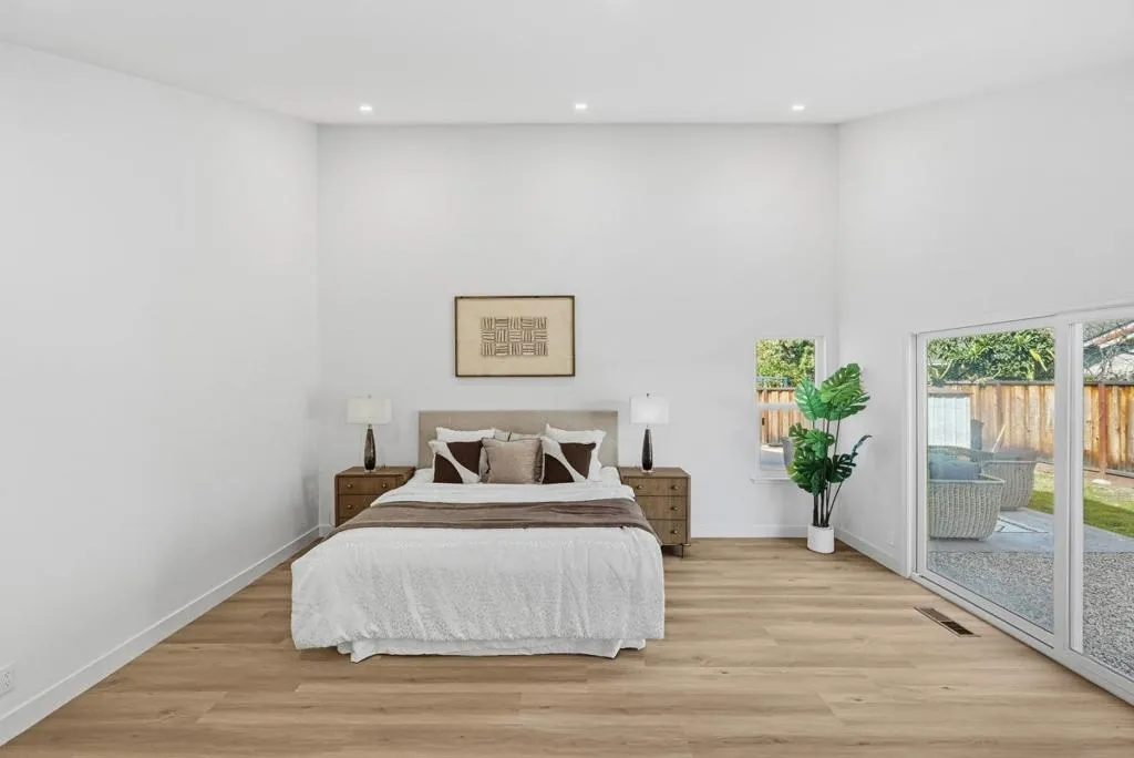 Beautifully renovated single-story Shapell home in a prime San Jose location, directly across from the expansive 17.2-acre Cataldi Park. This move-in ready home features soaring vaulted ceilings that create an open, airy atmosphere, along with fresh interior and exterior paint using premium Benjamin Moore finishes. Luxury waterproof SPC flooring runs throughout the home, adding both style and durability. The well-designed layout offers 4 bedrooms and 2 bathrooms, including a spacious primary suite with a walk-in closet and sliding door to the peaceful backyard. The kitchen features granite countertops, abundant cabinetry, a center island, and a casual dining area perfect for everyday living and entertaining. Conveniently located near Highway 680, Milpitas BART, Great Mall, Trader Joes, Safeway, Costco, and diverse dining options, offering the ideal blend of comfort and accessibility.